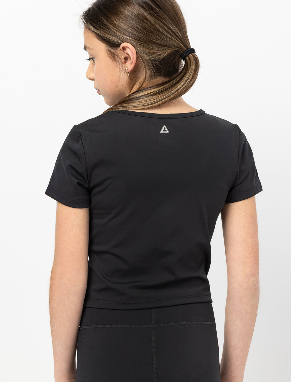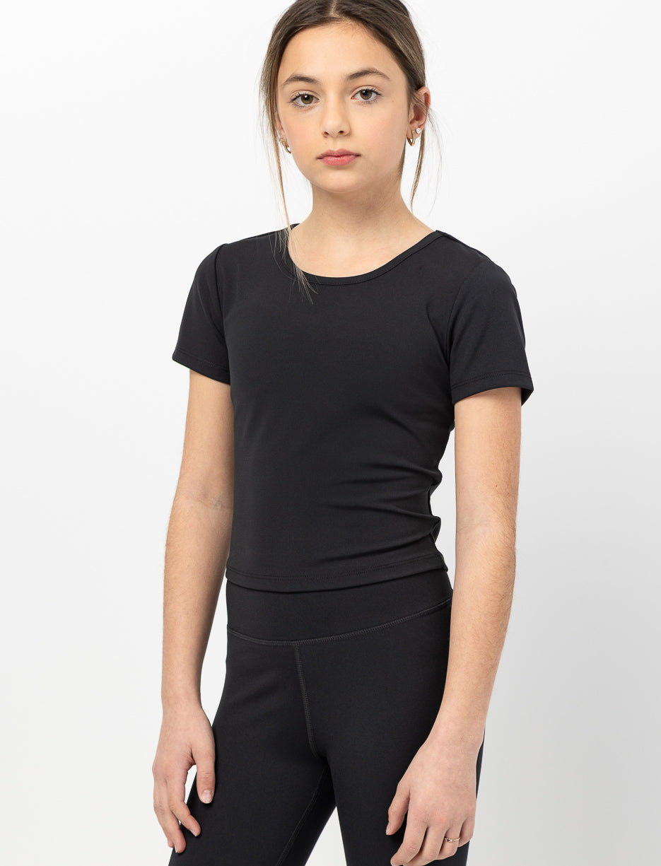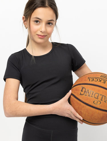 Designed for active teens, this sport t-shirt provides everyday comfort. Its length falls just below the belly button, offering an easy fit that moves well for school, sports, and downtime.