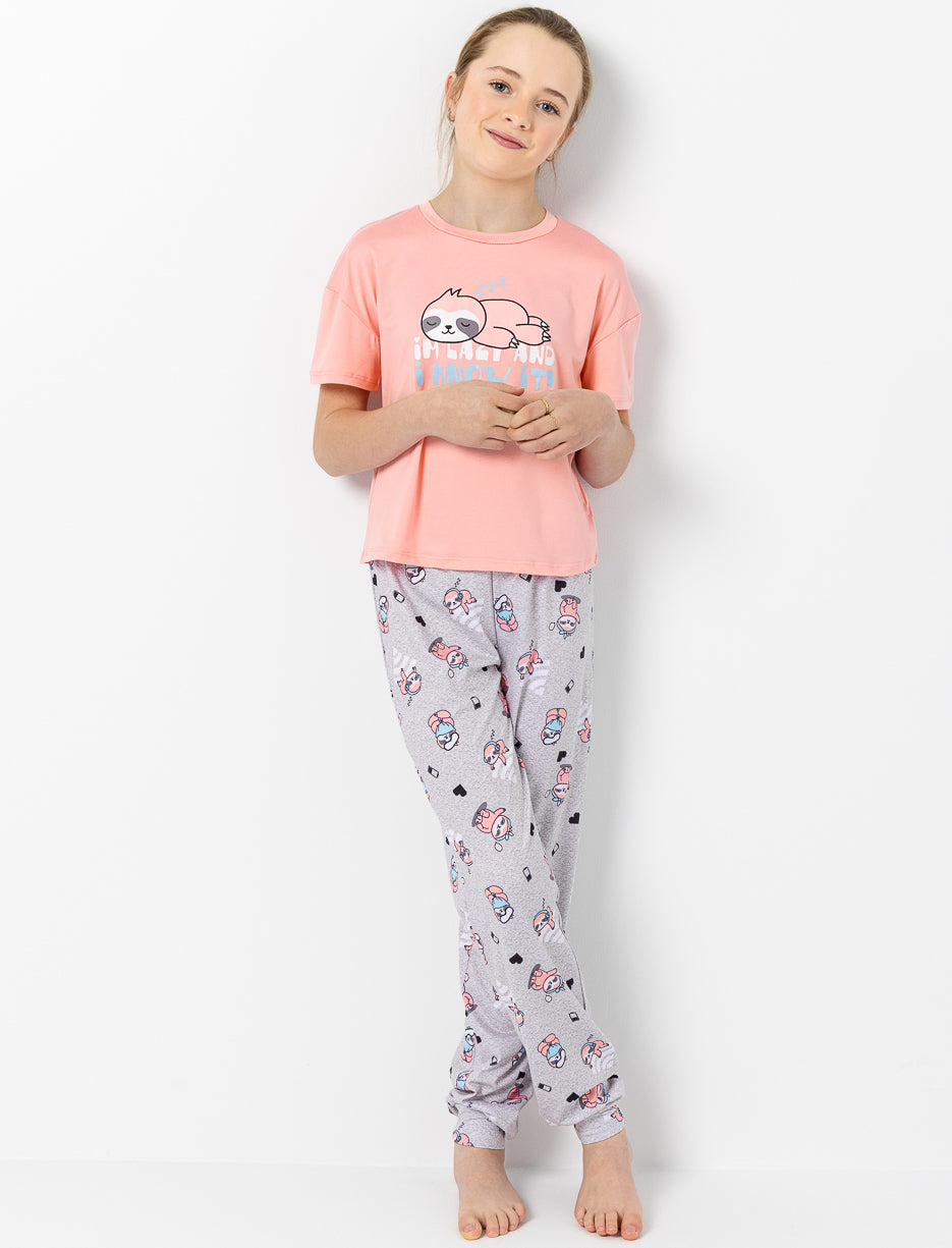 A pajama set made for relaxing at home. The printed t-shirt and matching pants create a comfortable combo, ideal for your teen’s laid-back evenings.