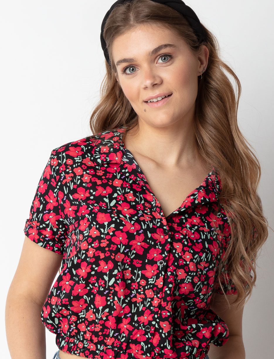 Floral Blouse with Elastic Hem