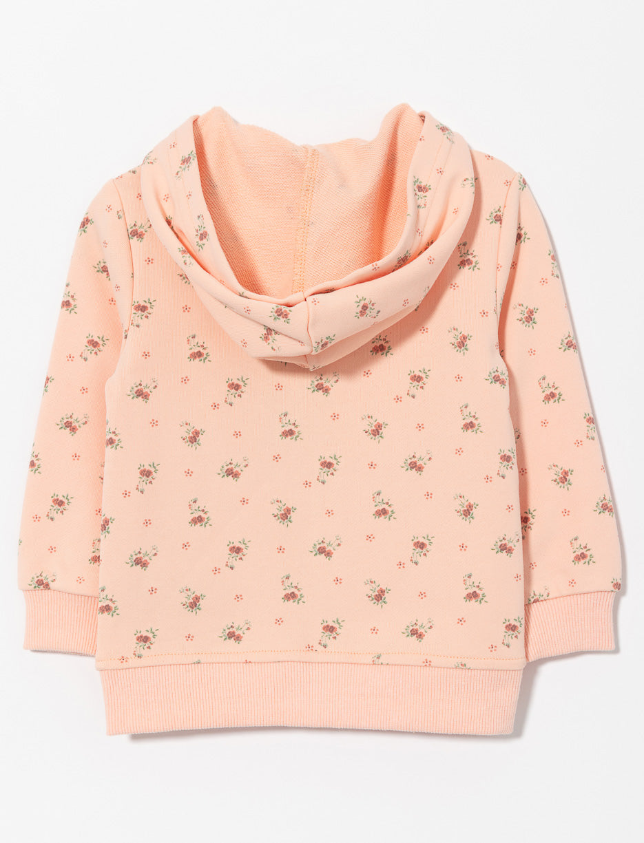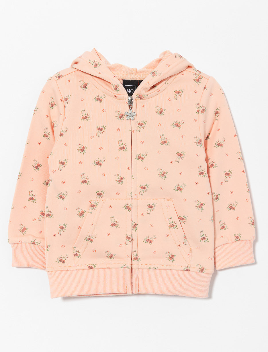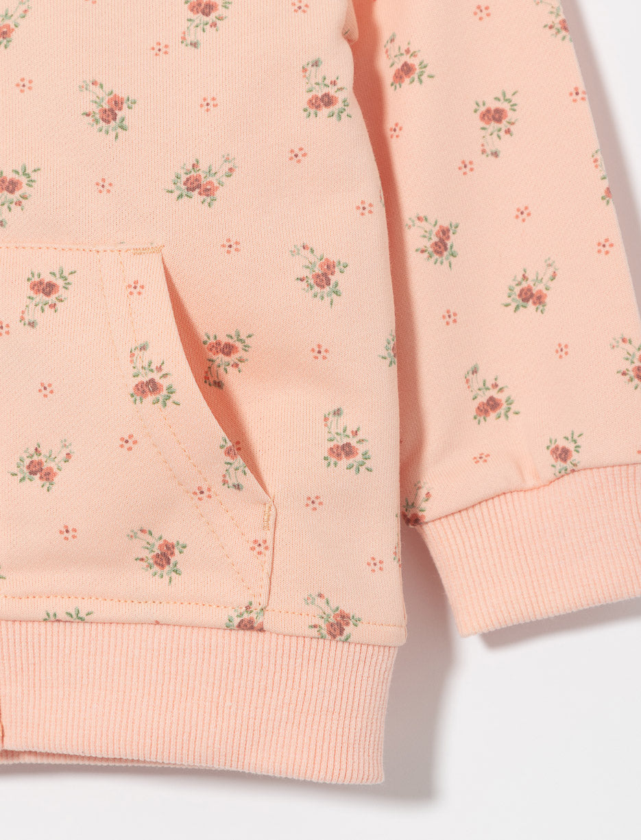 This zip-up hoodie keeps your baby warm and cozy with irresistible softness! The sweet floral print adds a charming touch to every outing, following her through all her little daily adventures.