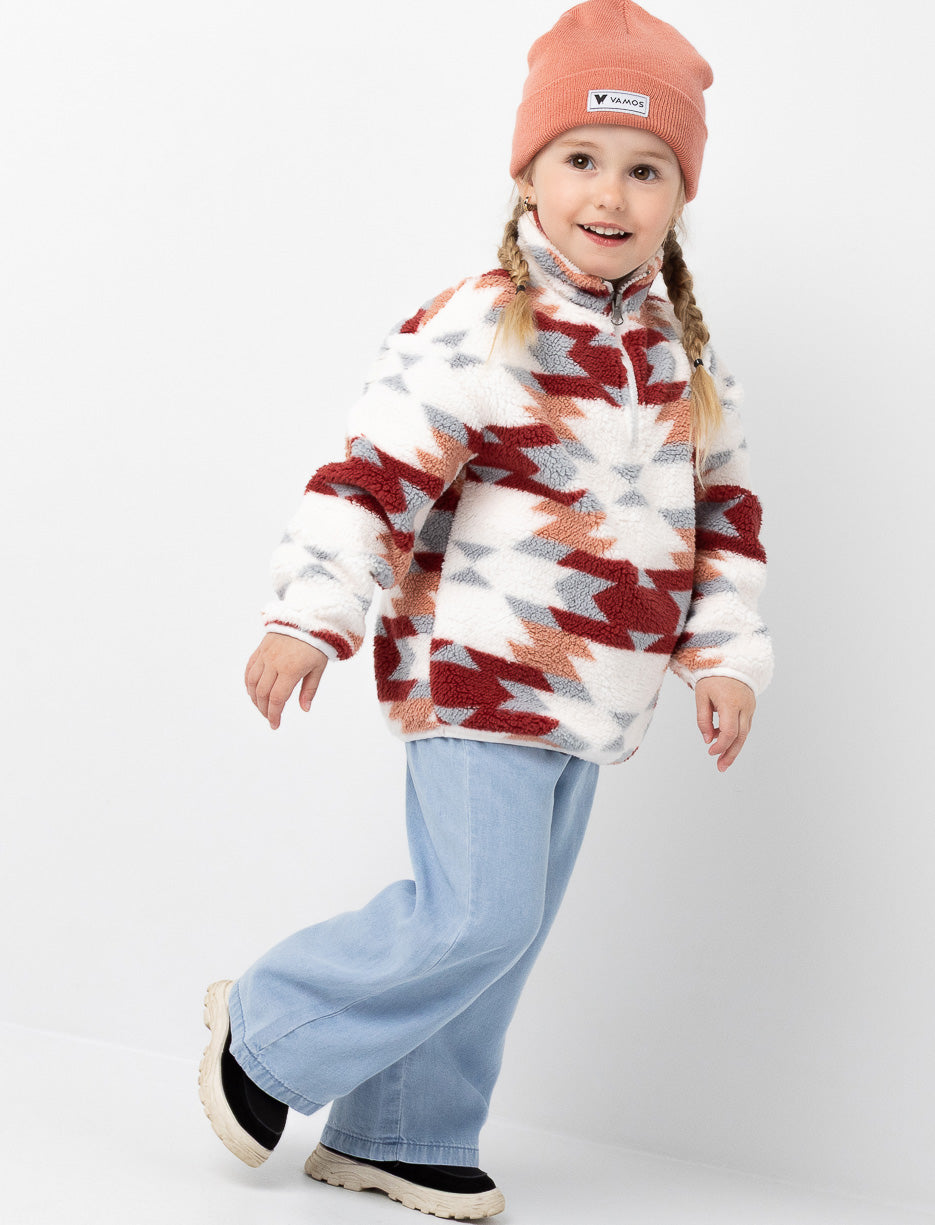 Half-zip Aztec Print Sherpa Pullover - Little Girl