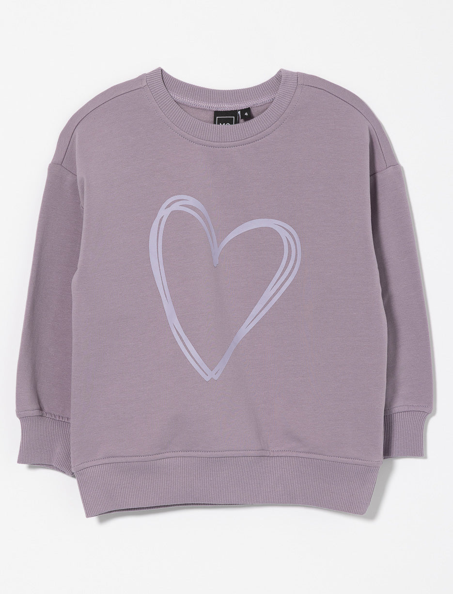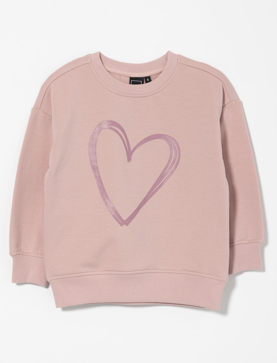 Fleece Heart Print Sweatshirt - Little Girl