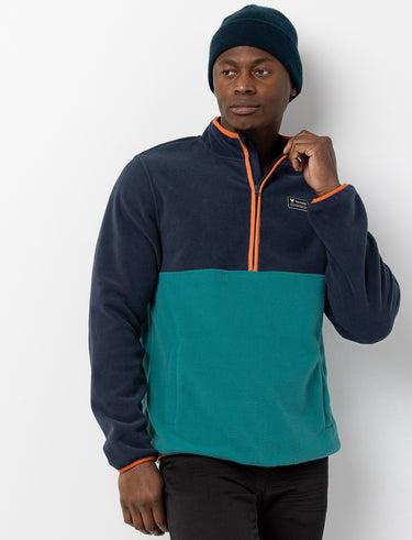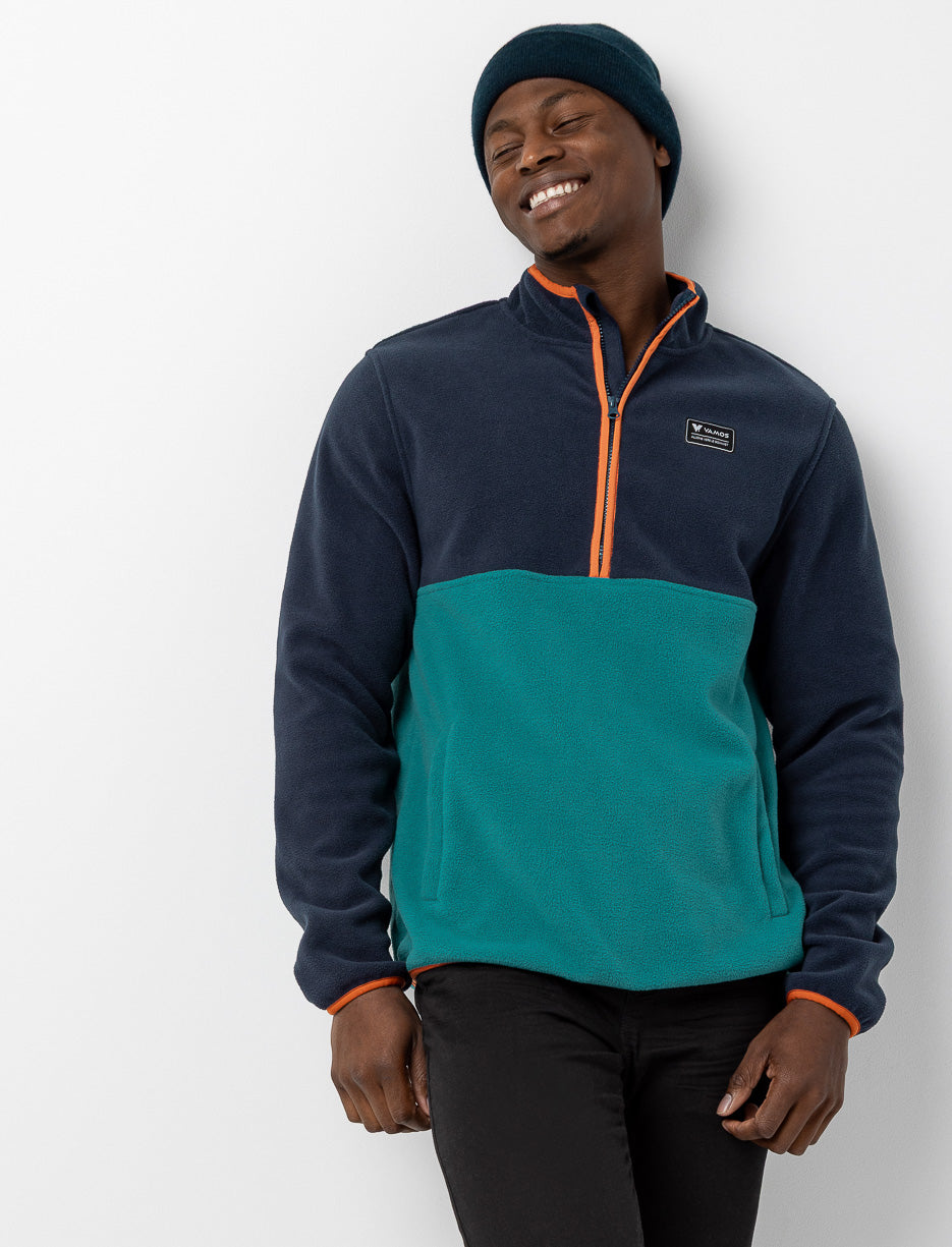 This soft fleece half-zip sweater is the perfect companion for chilly days. With its high collar, front pockets and bold colorblock design, it combines warmth and style in one easy layer.