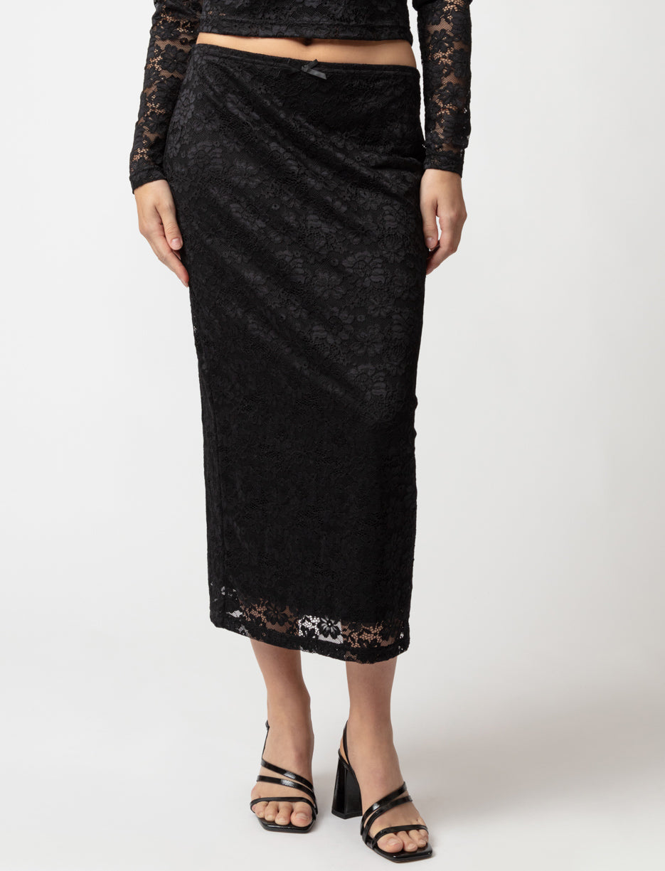 Elevate your style with this elegant lace skirt for a touch of glamour in any setting.
