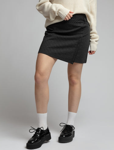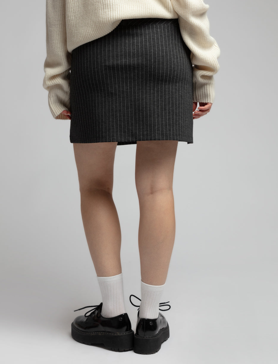 This modern twist on the classic mini skirt features a sleek pinstripe design, making it an effortless choice for stylish day-to-night wear.