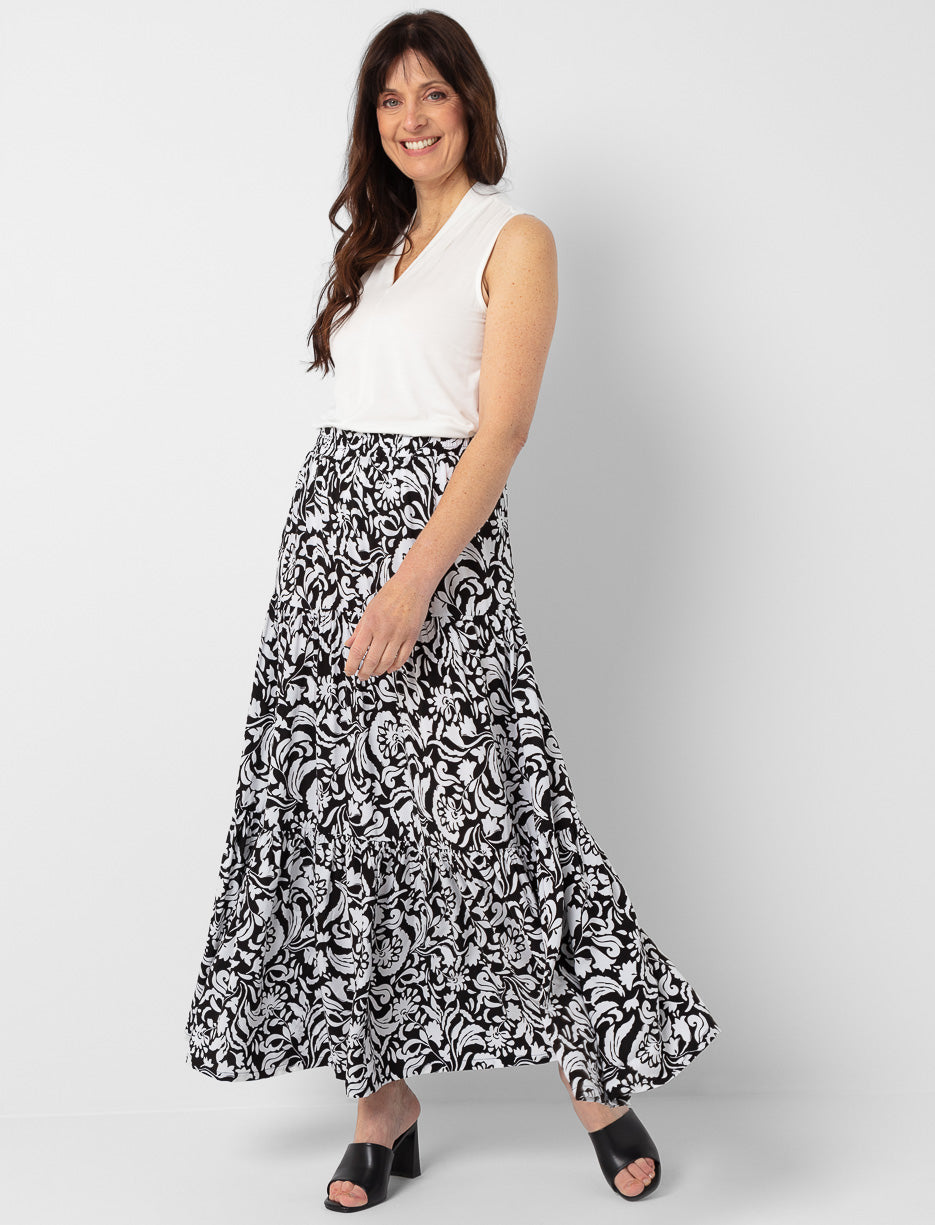 Flowing lines, a print that catches the light, and a touch of effortless elegance, this skirt turns every step into a style statement.