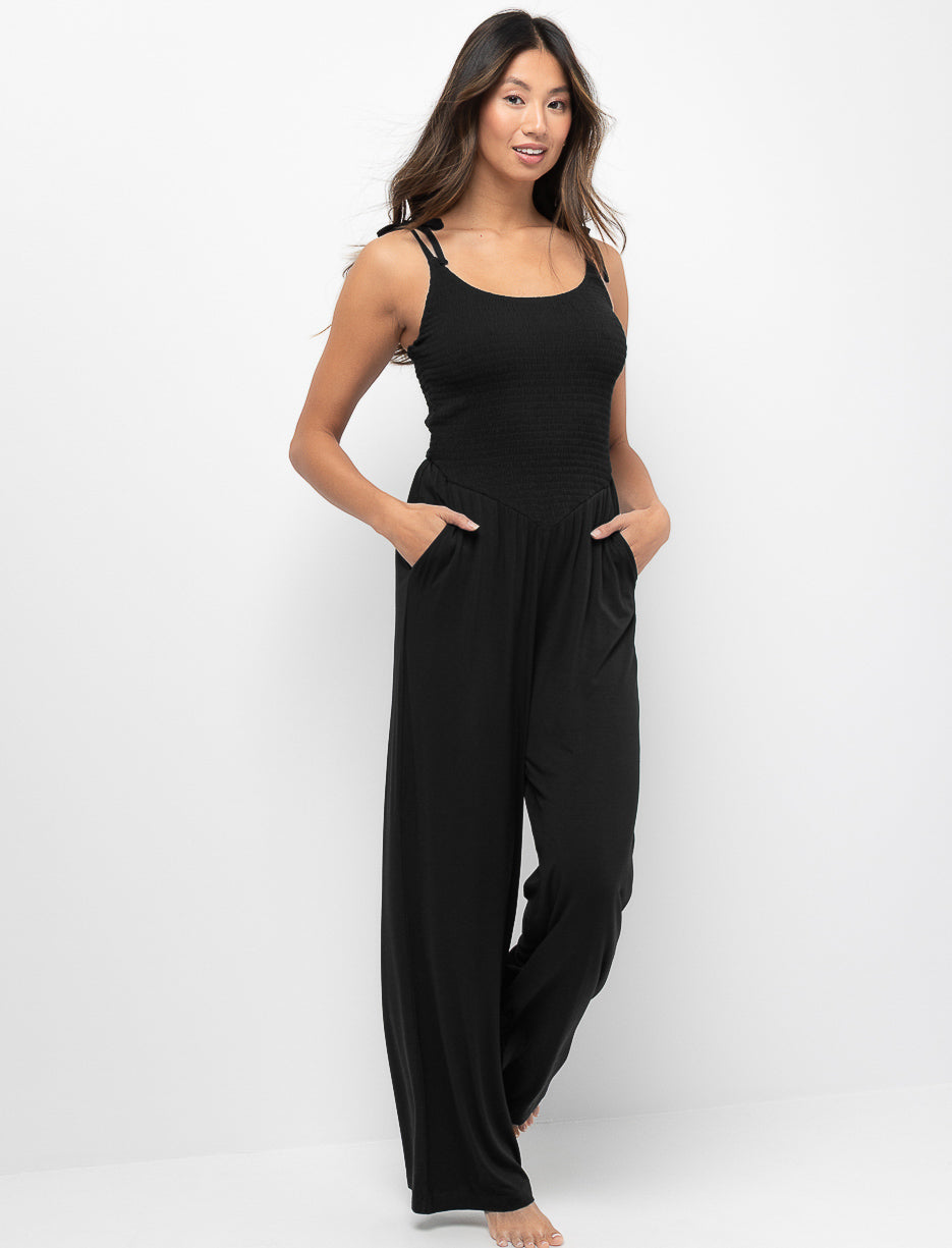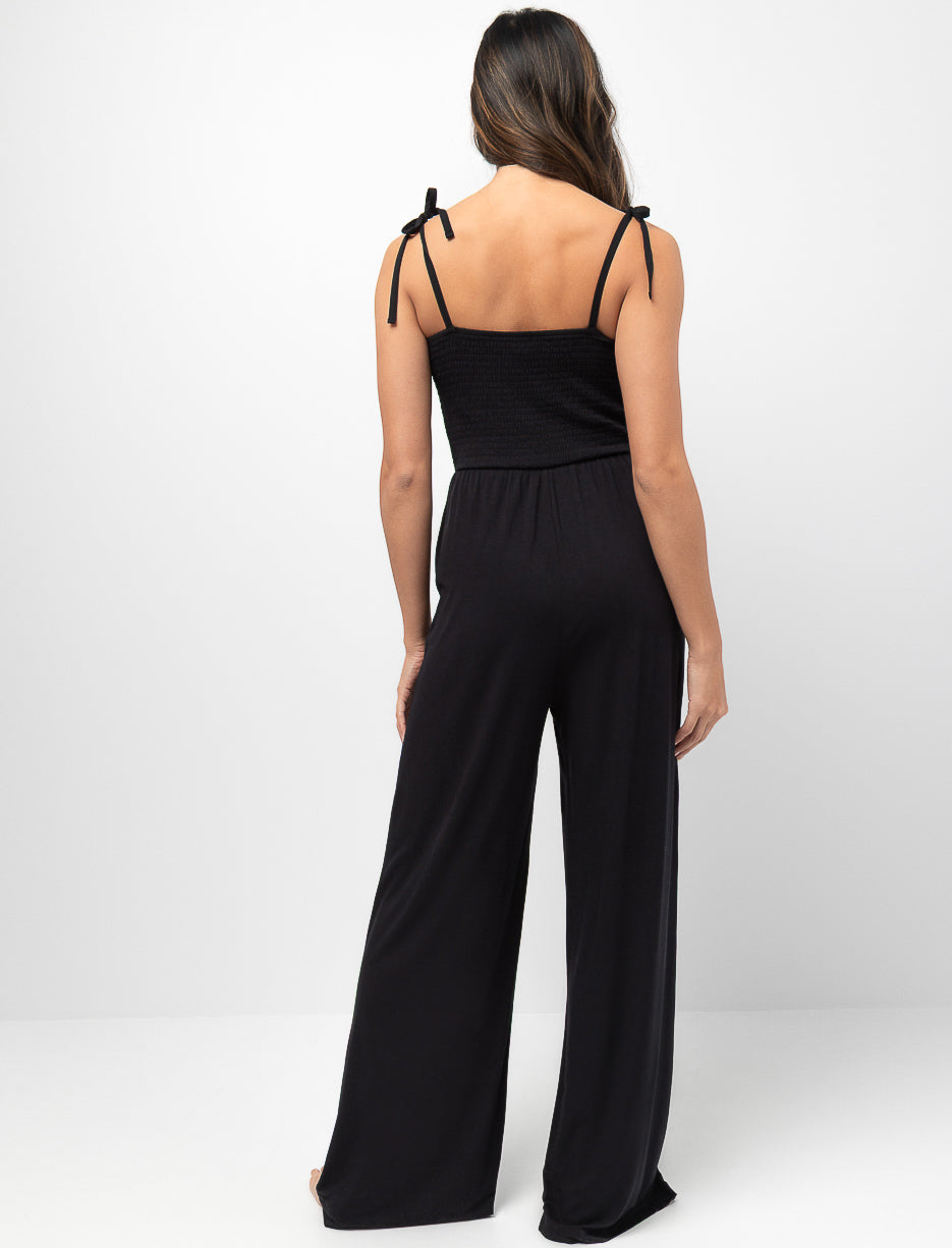 A tie-strap jumpsuit designed for light, easy wear. The smocked top and wide legs create a fluid, relaxed look, perfect for days when comfort and simplicity make the best style.