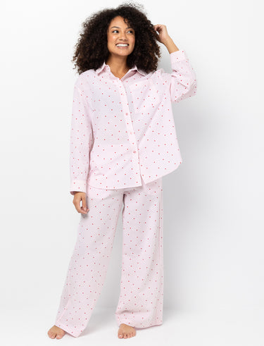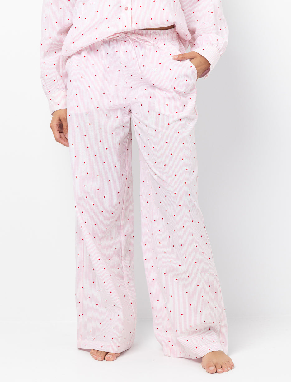 Pajama pants made for relaxing moments. The elastic waist with drawstring and side pockets provide an easy fit, while fine stripes and small heart details add a gentle touch.