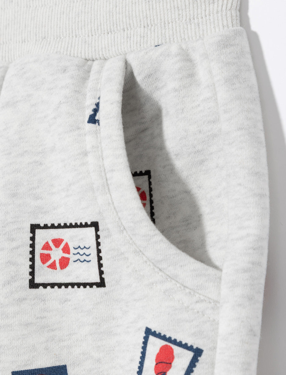 These fleece shorts keep your little boy comfy with an easy elastic waist and practical pockets. The tiny stamp print brings a fun vacation vibe that brightens up his everyday adventures.