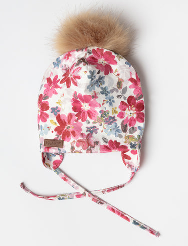 This charming hat is simply irresistible! With its fluffy pompom and floral print, it adds a touch of coziness to your little princess’s chilly day adventures.
