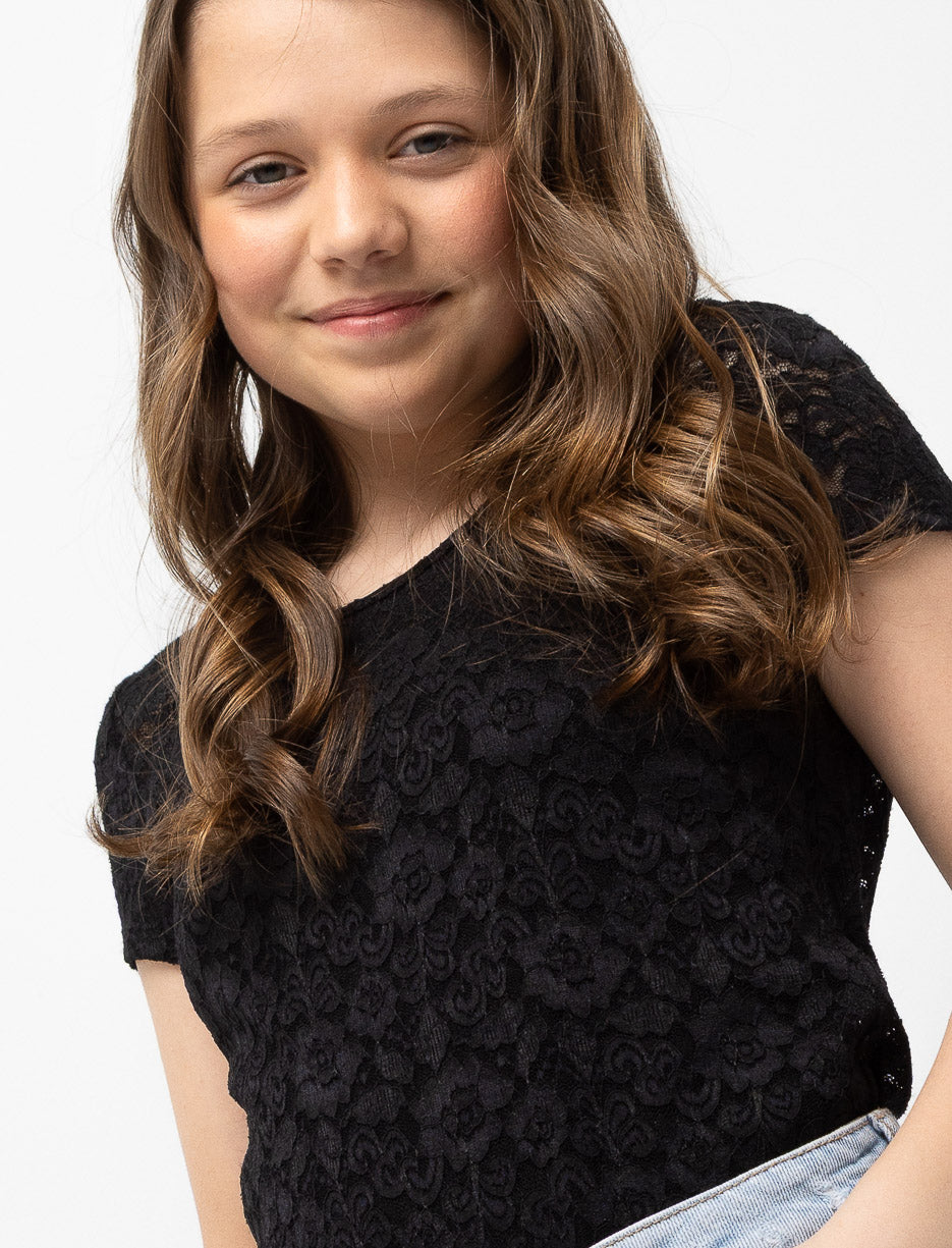 A lace t-shirt that’s as chic as it's comfy, perfect for adding a touch of elegance to your teen’s everyday style. Easy to pair, it’s sure to become a wardrobe favorite.