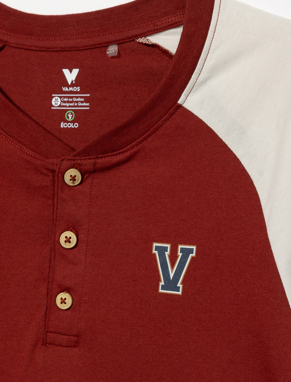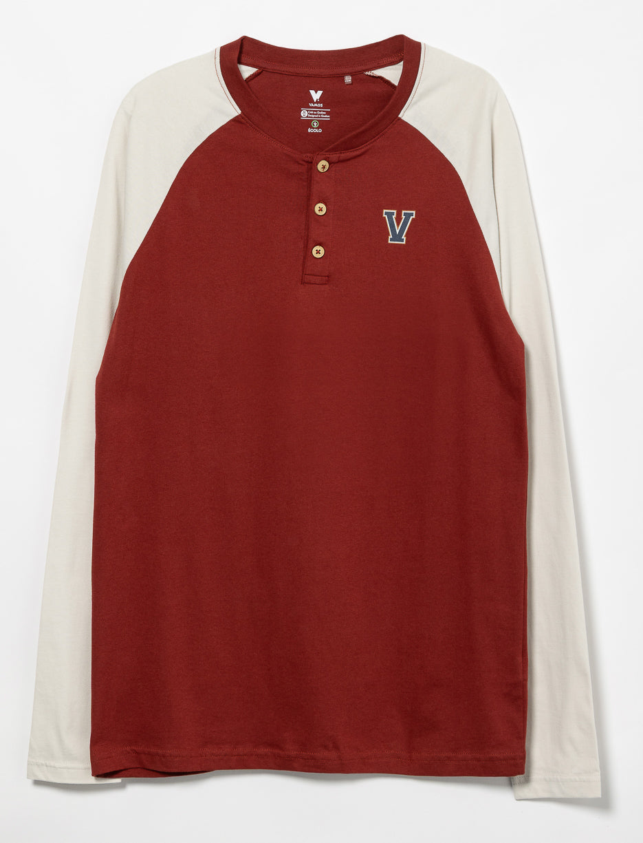 Inspired by varsity style, this long-sleeve henley shirt with contrast sleeves is accented by a printed chest patch. Its relaxed fit and soft fabric make it the perfect pick for effortless everyday style and comfort.