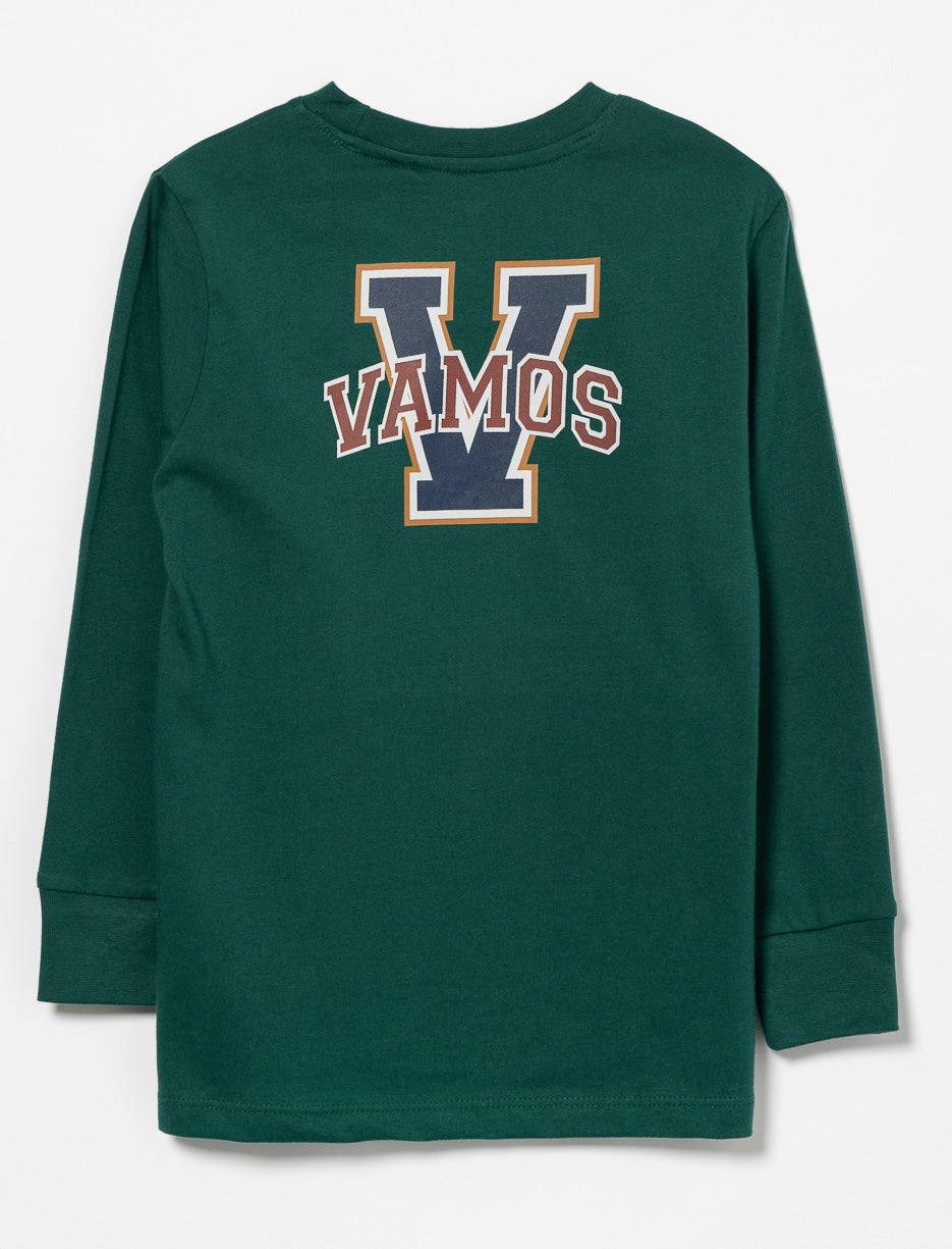 Add sporty energy to his outfit with this bold long sleeve tee featuring a large VAMOS print on the back. A simple yet standout addition to his casual closet.