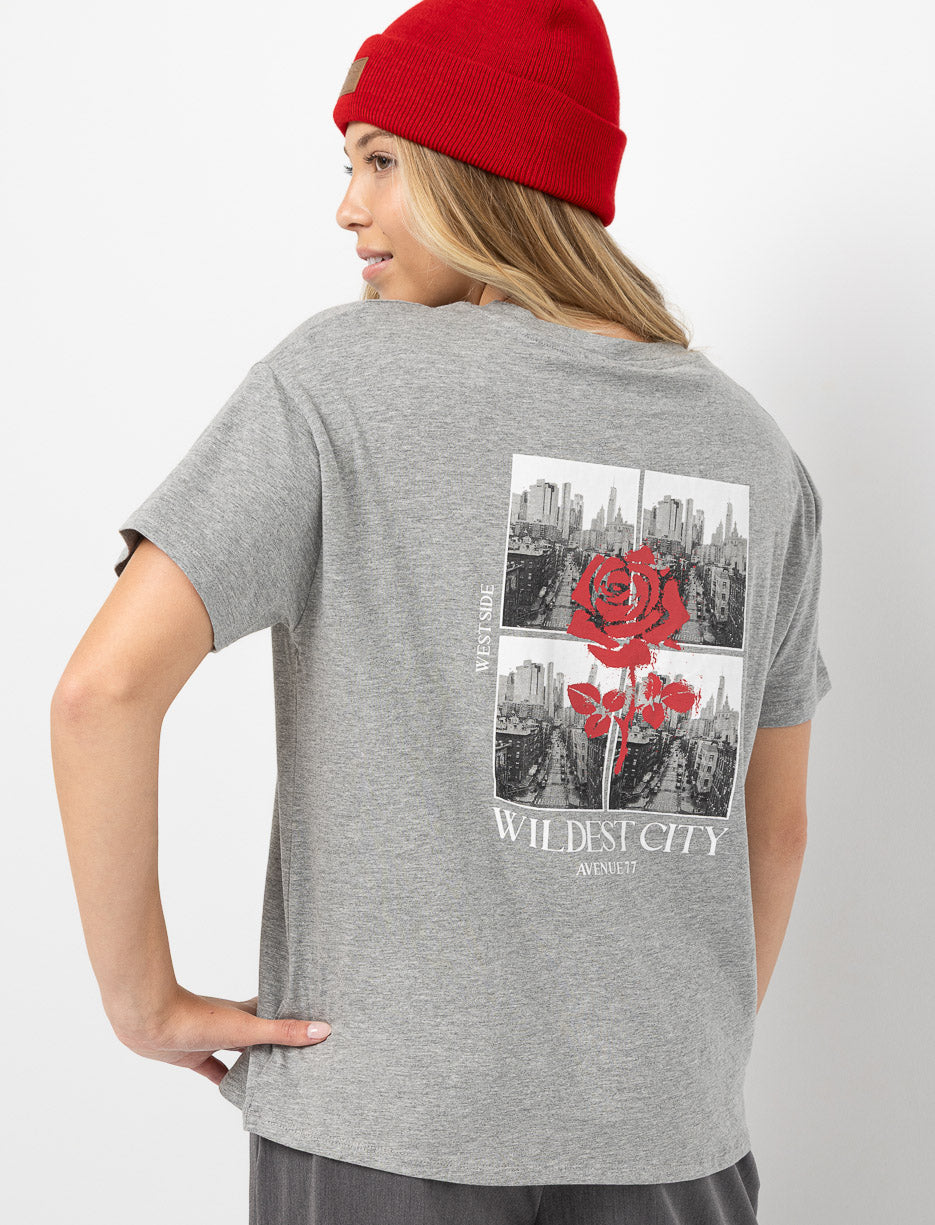 Ce t-shirt imprimé à col rond et coupe décontractée apporte une touche tendance à vos looks quotidiens. Léger et confortable, il se porte facilement en toute occasion.