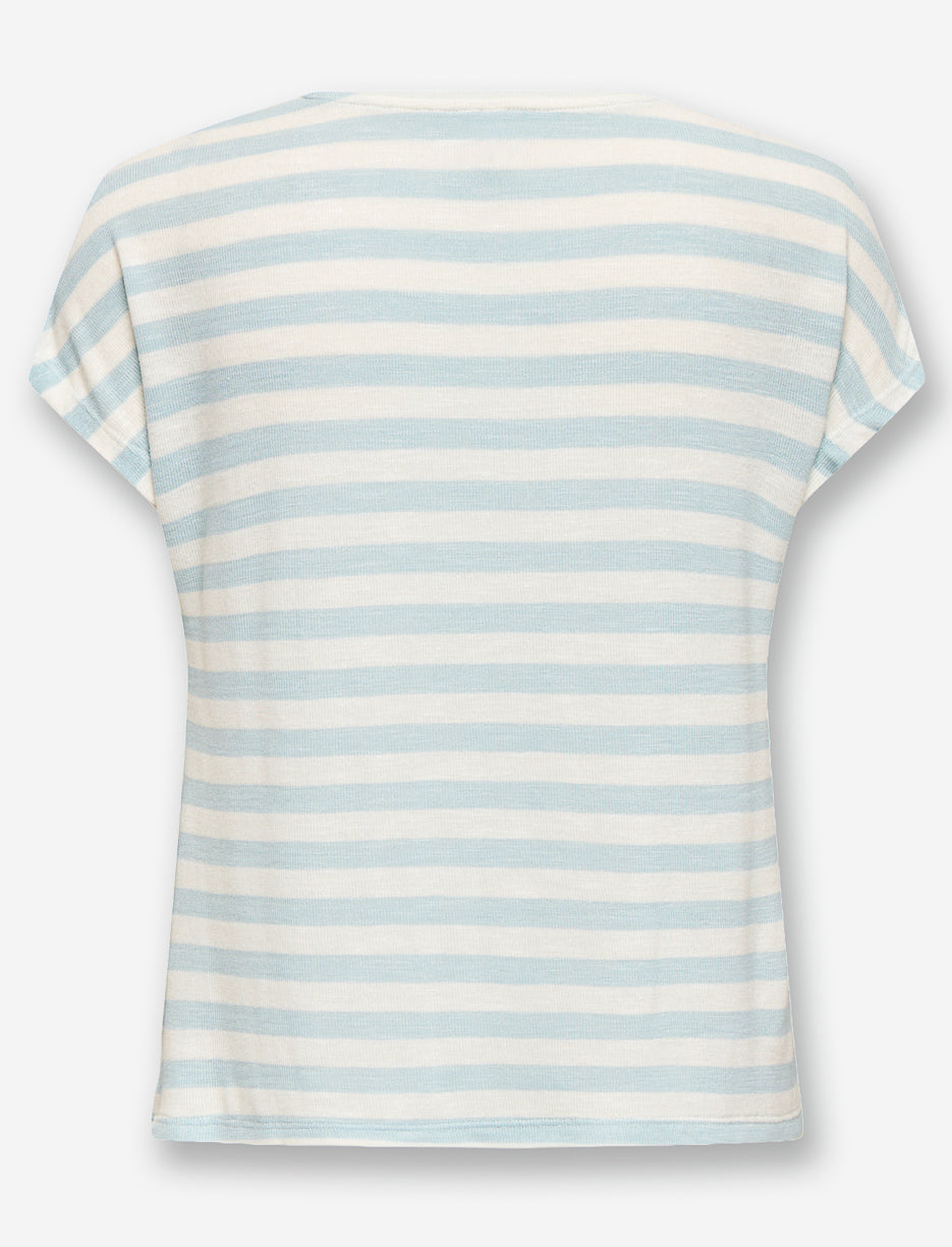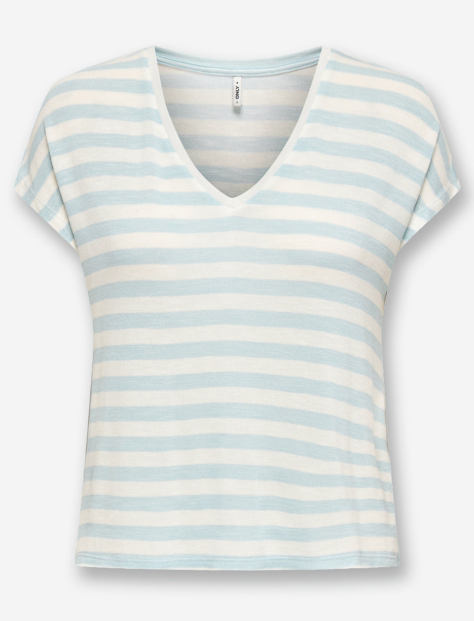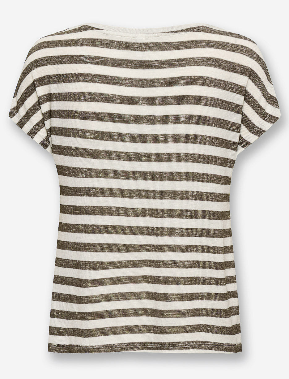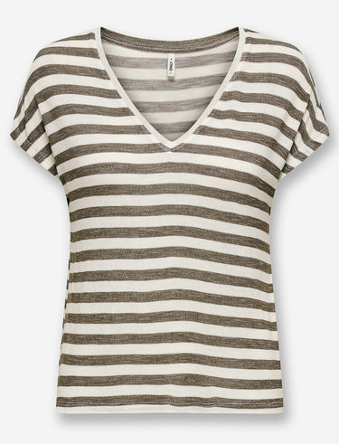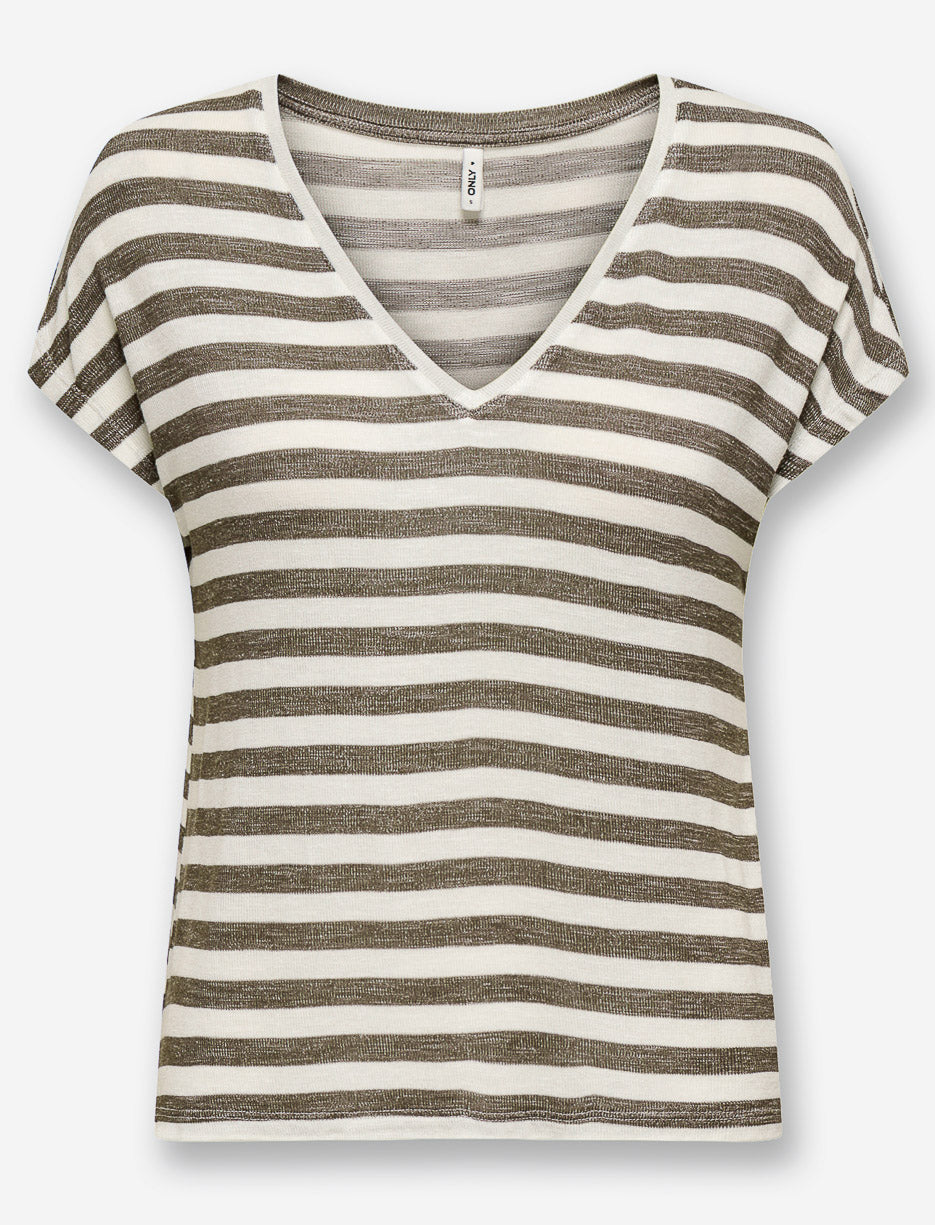 Découvrez notre t-shirt rayé à col en V, conçu pour un confort quotidien sans compromis. Ses rayures intemporelles ajoutent du caractère à votre garde-robe, tandis que le col en V flatteuse et les manches courtes offrent une silhouette élégante et aérée. Parfait pour les journées décontractées ou pour créer des looks polyvalents, ce basique indispensable s'associe facilement avec vos pièces préférées. Vous méritez un vêtement qui vous met en valeur et dans lequel vous vous sentez bien.