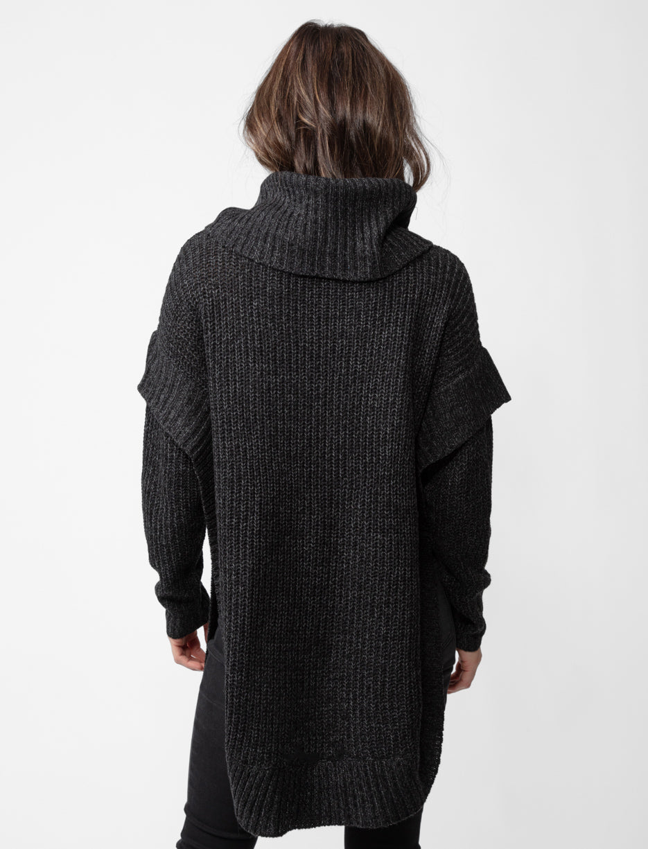 Poncho en tricot à col roulé