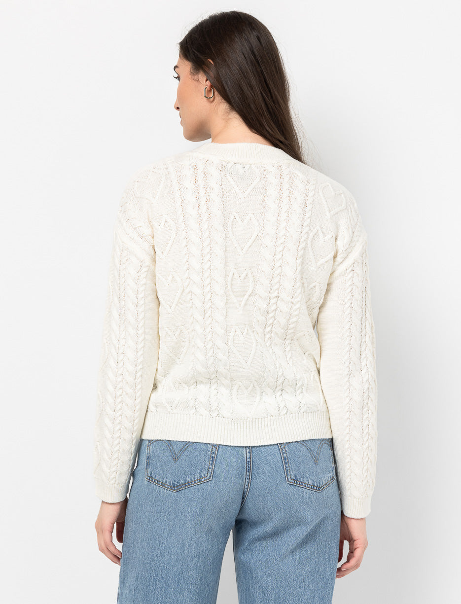 Ce chandail en tricot à motif cœur et col rond apporte une touche de douceur à vos tenues d’hiver. Sa coupe confortable est parfaite pour vos journées au chaud.