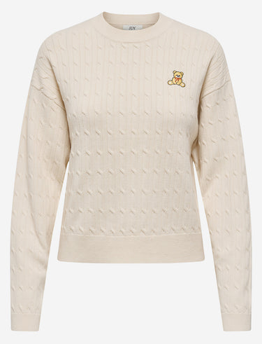Doux, câblé et orné d’un ourson brodé, ce chandail en tricot à col rond est la touche mignonne et confortable qu’il manquait à votre garde-robe.