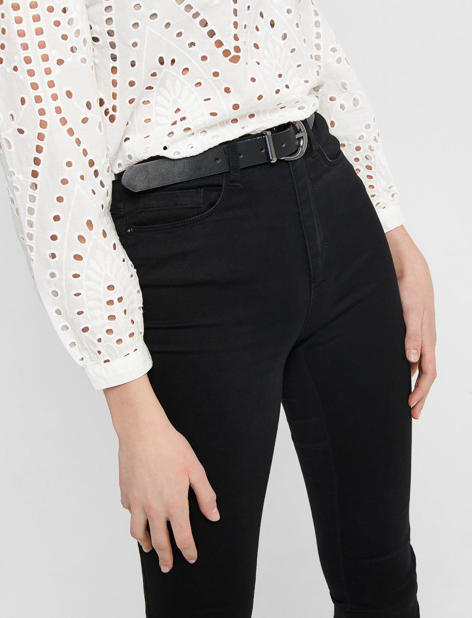 Ce jean skinny à taille haute offre une silhouette élégante et un confort absolu. Facile à agencer, il devient votre allié parfait du bureau aux sorties du week-end.