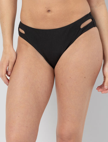 Ce bas de bikini se distingue par ses découpes sur les côtés qui ajoutent une touche moderne. Sa coupe confortable et son tissu côtelé en font une pièce facile à porter pour profiter pleinement des journées au soleil.