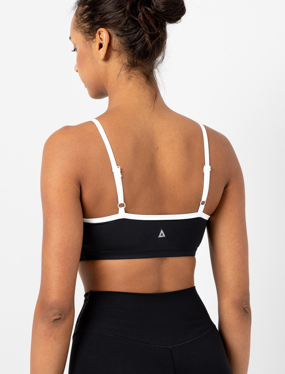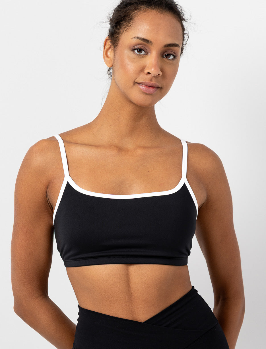 Minimaliste et confortable, cette camisole de sport suit vos mouvements avec légèreté. Ses bretelles fines et son contour blanc ajoutent une touche graphique à une pièce pensée pour l’action.