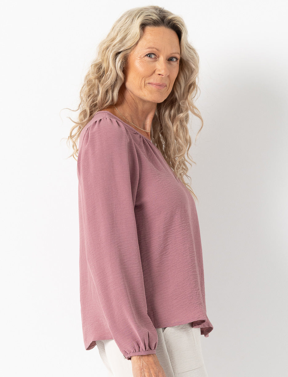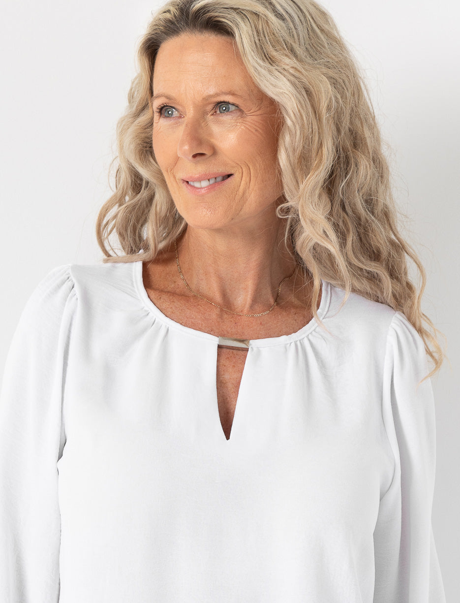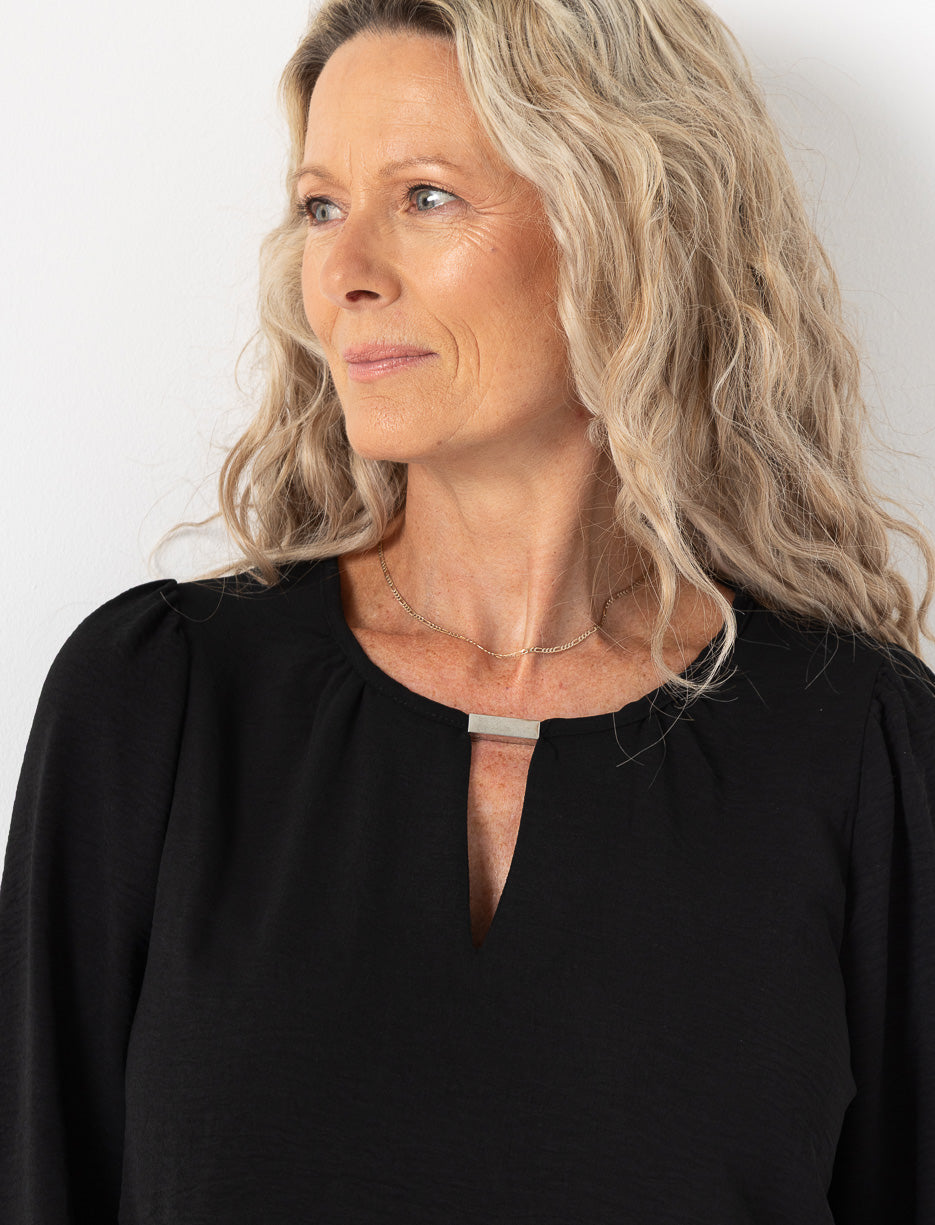 Fluide, légère et pleine de charme : cette blouse est faite pour les journées sans presse et les moments tout en douceur.