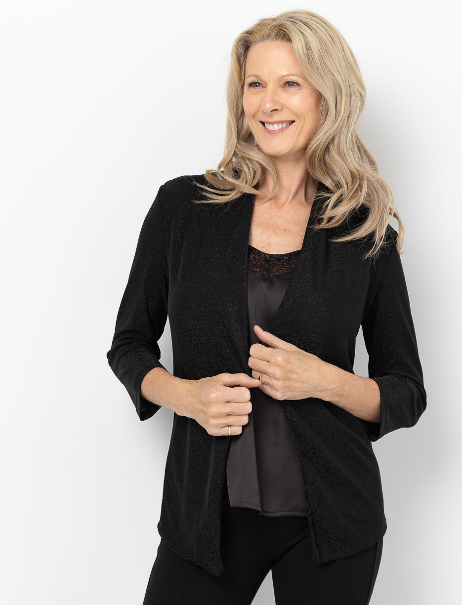 Ce veston léger et scintillant ajoute une touche de chic à votre tenue sans effort. Parfait pour compléter un look de soirée élégant ou rehausser une allure raffinée.