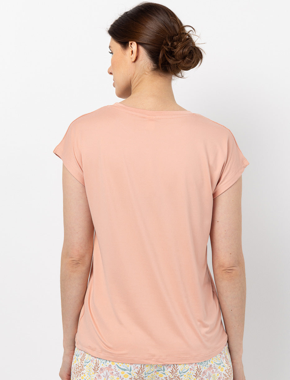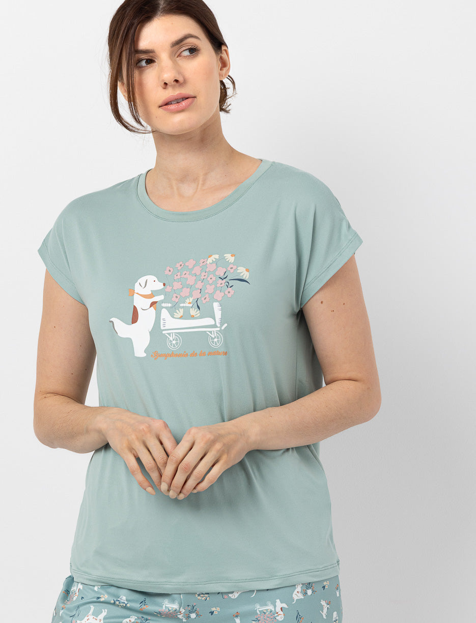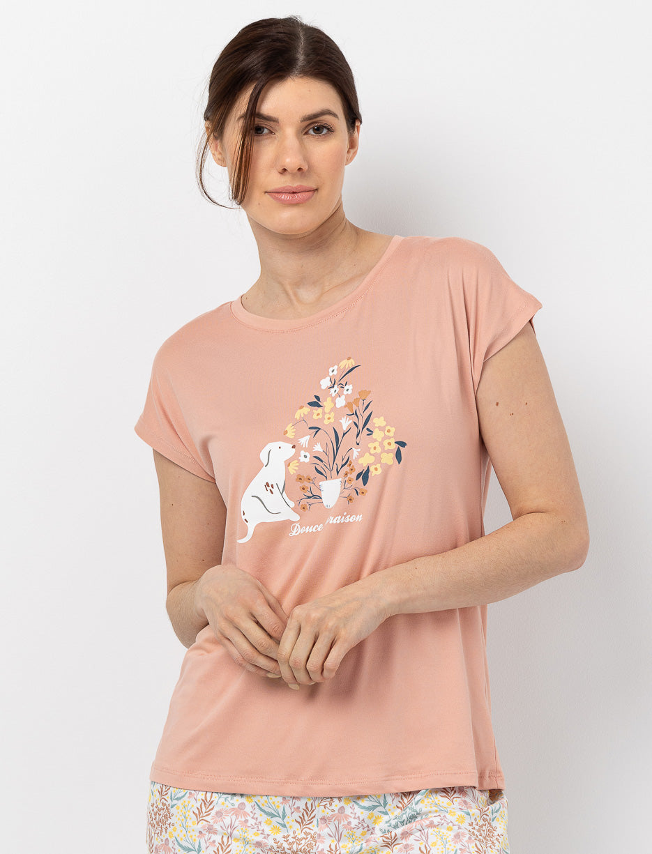 Enveloppez-vous de luxe avec ce pyjama en jersey brossé premium. Les manches dolman généreuses offrent une liberté de mouvement incomparable, tandis que le col dégagé assure un confort maximal pour vos nuits. L'imprimé distinctif ajoute une touche de style à votre détente. Douceur, élasticité et élégance réunies pour des moments de bien-être absolu.