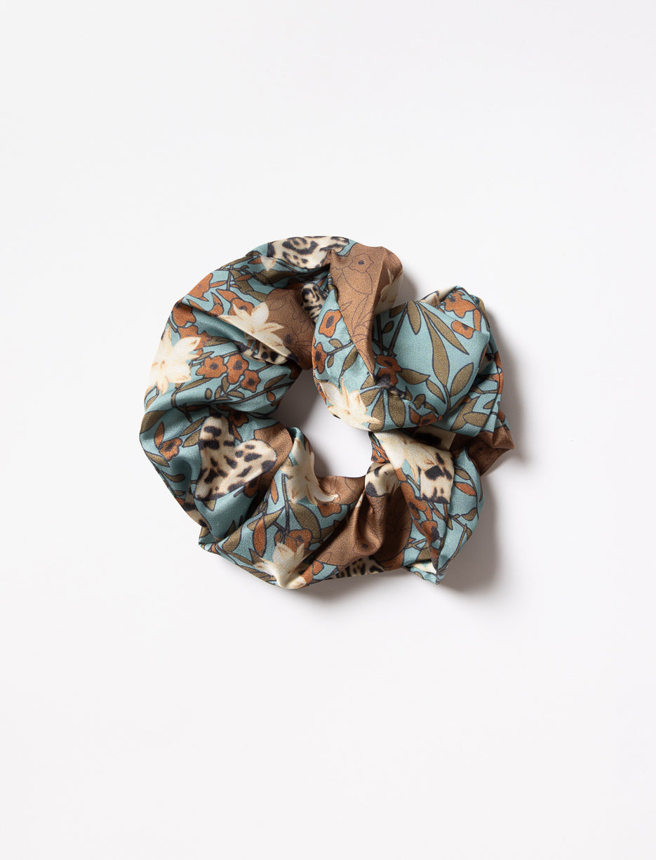 Chouchou pour cheveux avec motif fleuri sur l’ensemble. D’un diamètre de 10 cm et d’une largeur de 3 cm, il ajoute une touche féminine à toutes les coiffures.