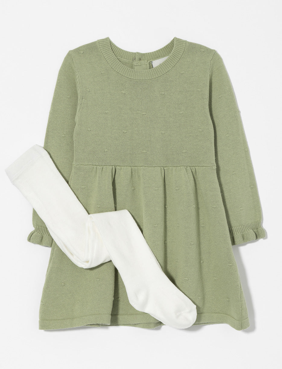 Robe en tricot texturé avec collants - bébé fille