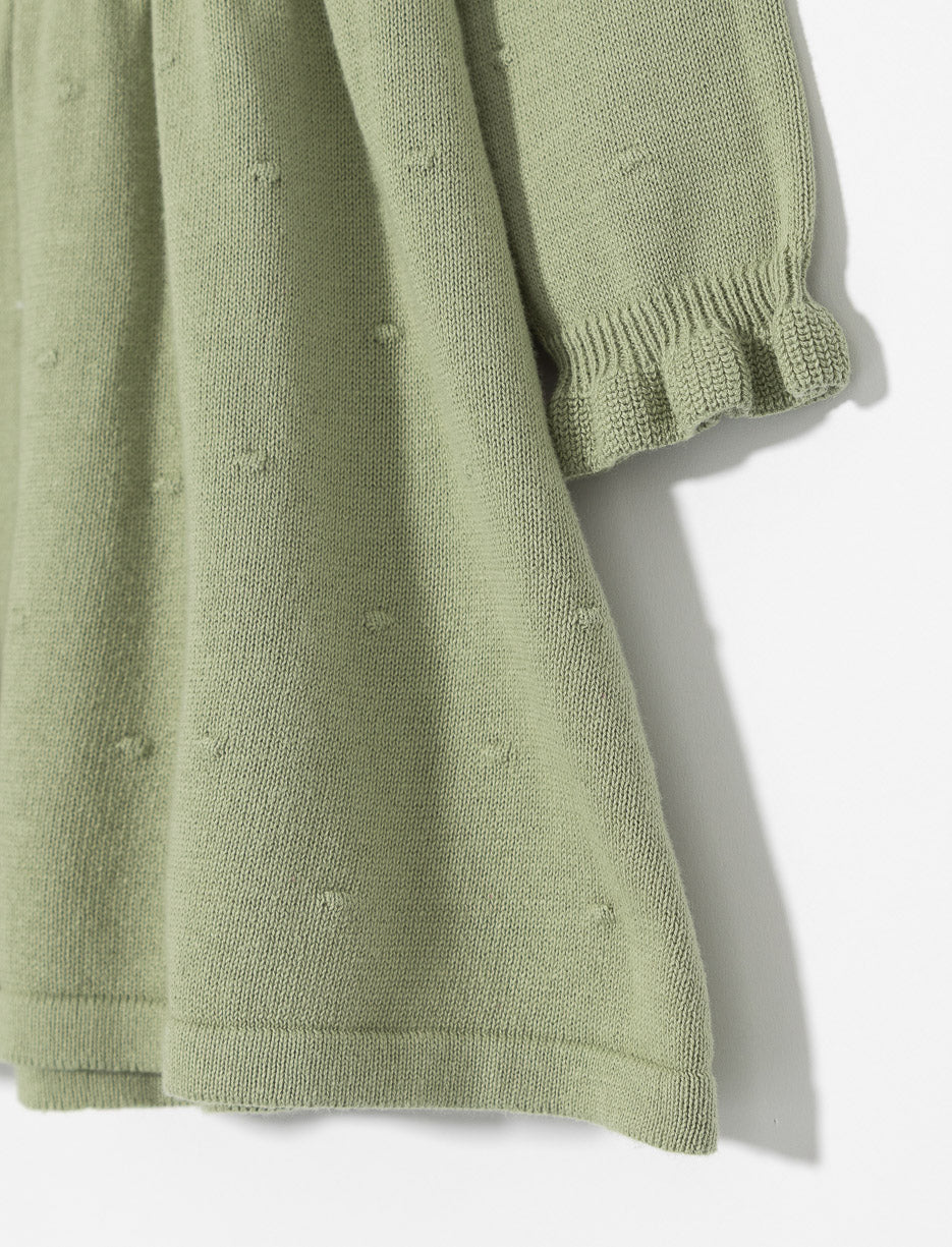 Une robe en tricot délicatement texturée, accompagnée de ses collants assortis, pour habiller bébé fille avec confort et une élégance toute en simplicité.