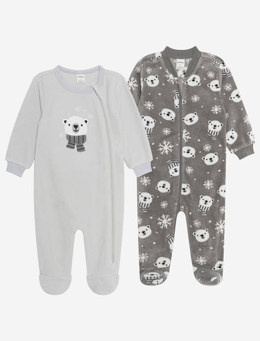 Un lot de deux pyjamas une pièce à pattes, parfaits pour garder bébé confortable toute la nuit. Avec fermeture éclair pratique sur toute la longueur, col rond et manches longues, ces essentiels offrent douceur et praticité à chaque usage.