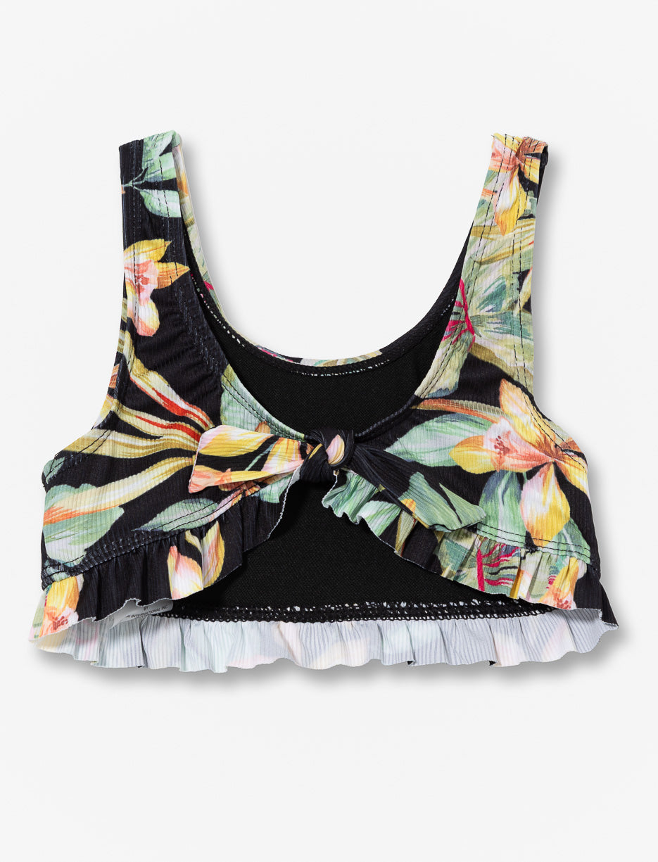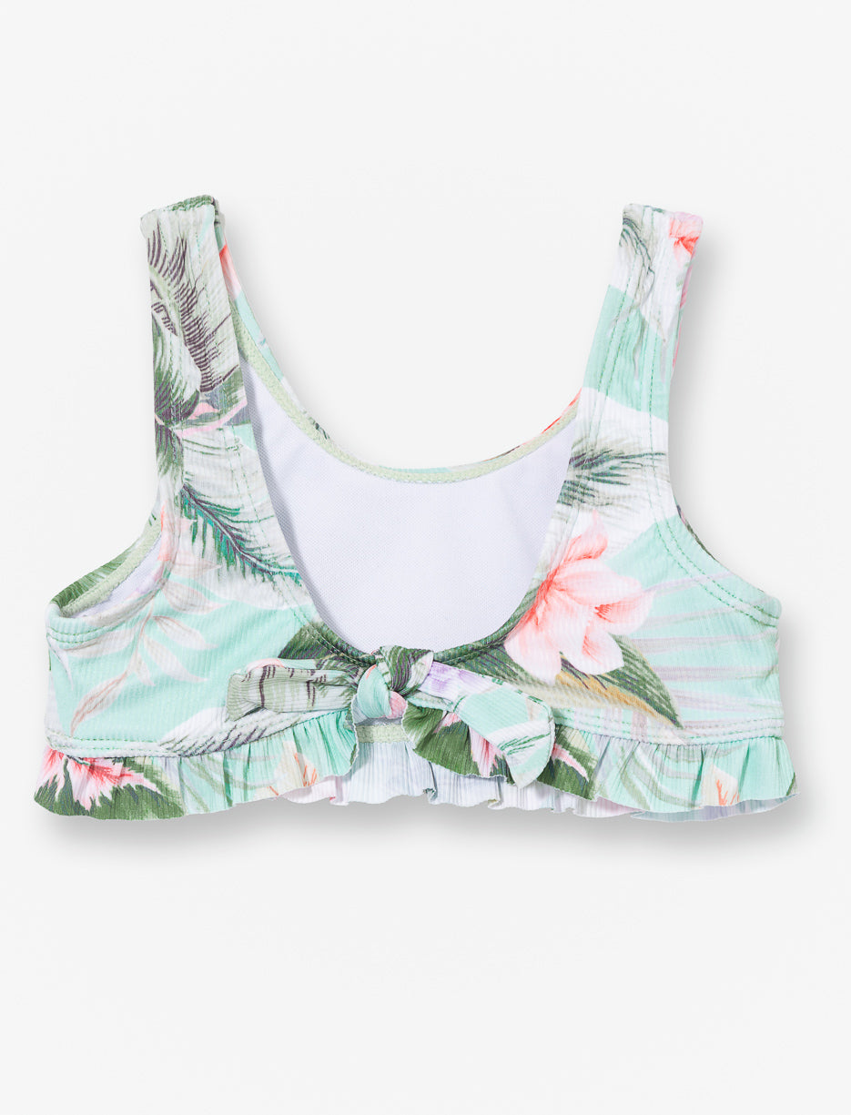 Un charmant maillot 2 pièces pensé pour votre petite fille, avec un haut col rond orné d’un nœud au dos et de jolis volants. Le bas assorti ajoute une touche délicate avec ses frills aux ouvertures de jambe. Motif floral et tissu côtelé confortable.