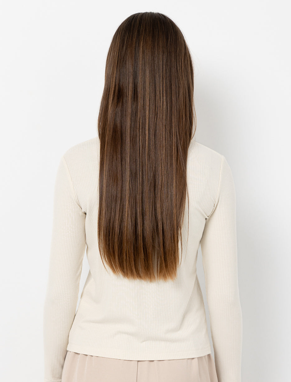 Un essentiel doux et extensible à porter seul ou superposé. Avec son col montant et sa coupe près du corps, ce haut accompagne ses tenues préférées avec simplicité et style.