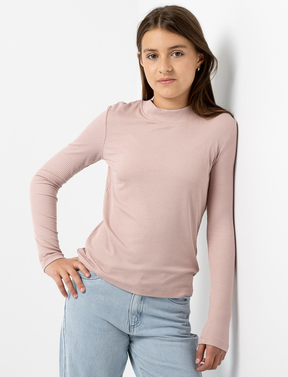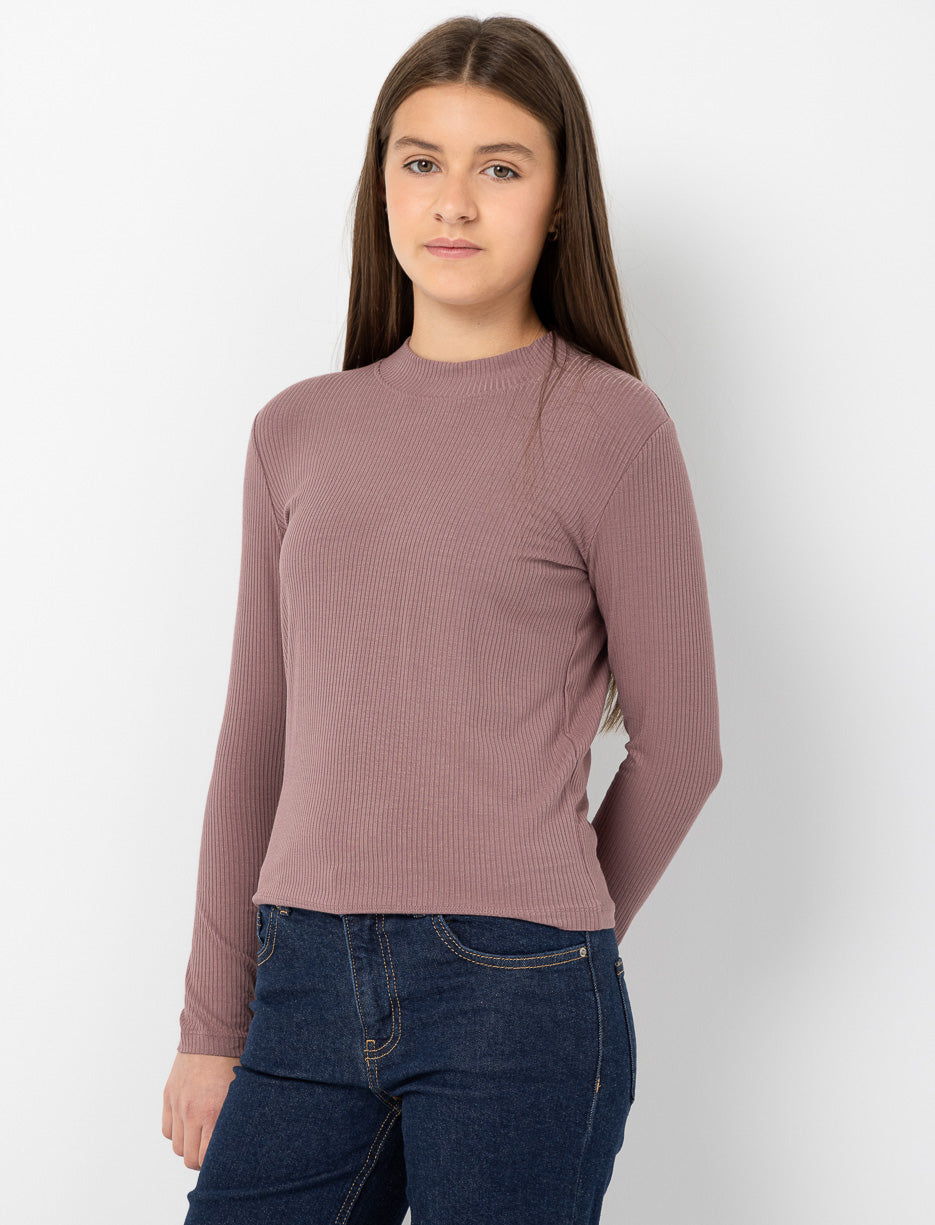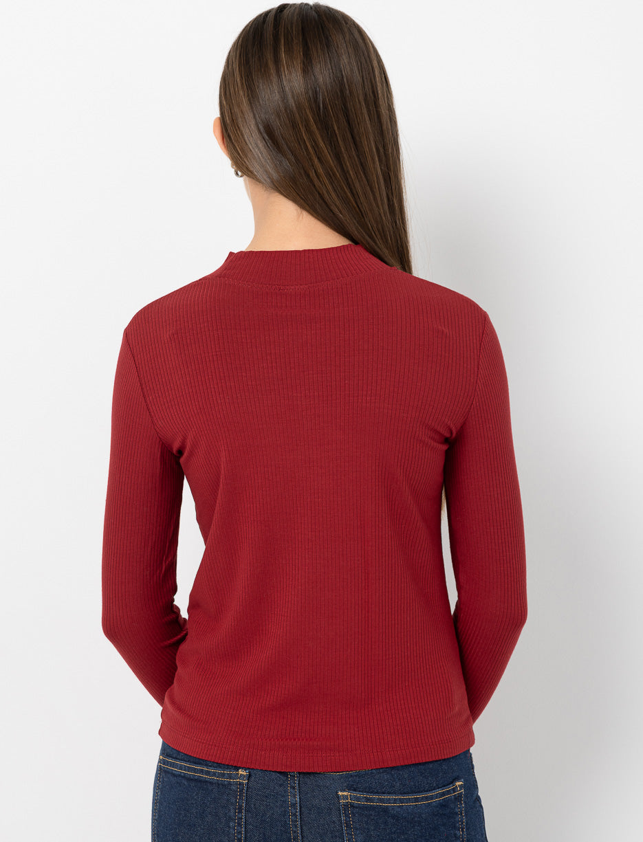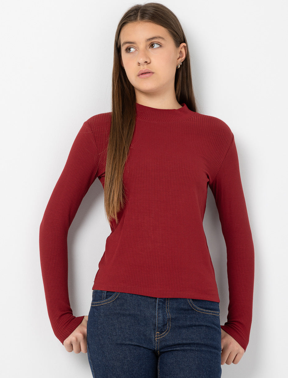 T-shirt côtelé à col montant