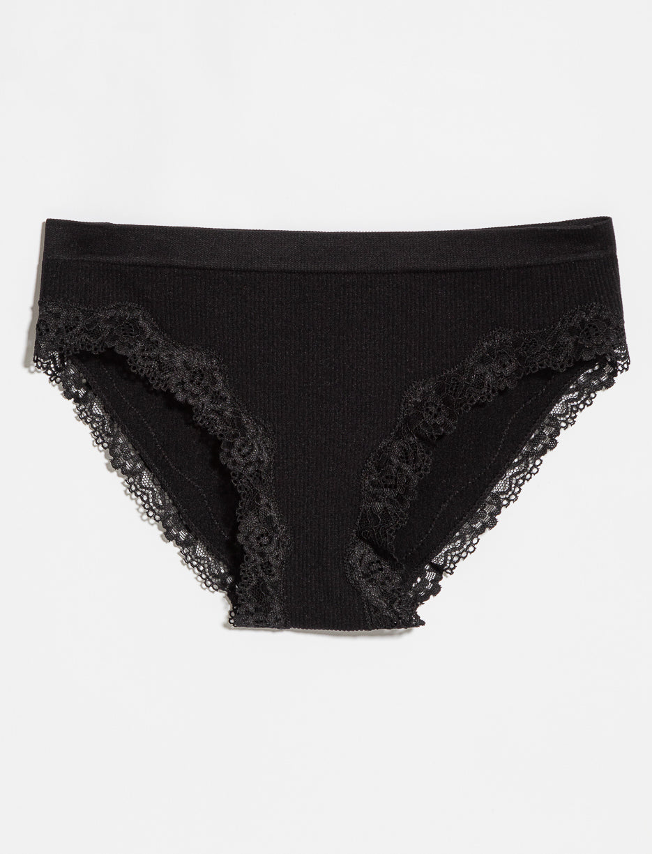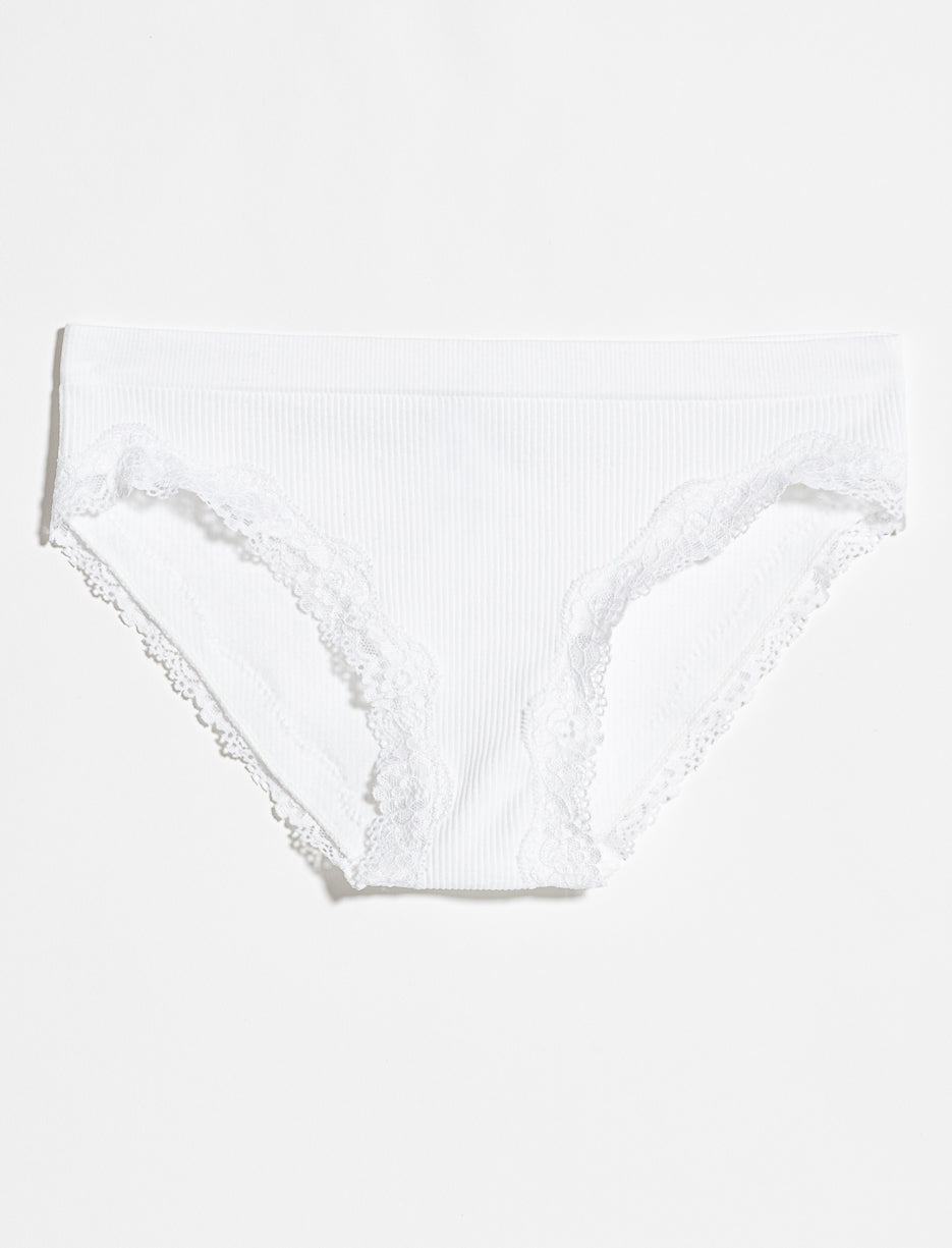 Culotte bikini côtelée à dentelle