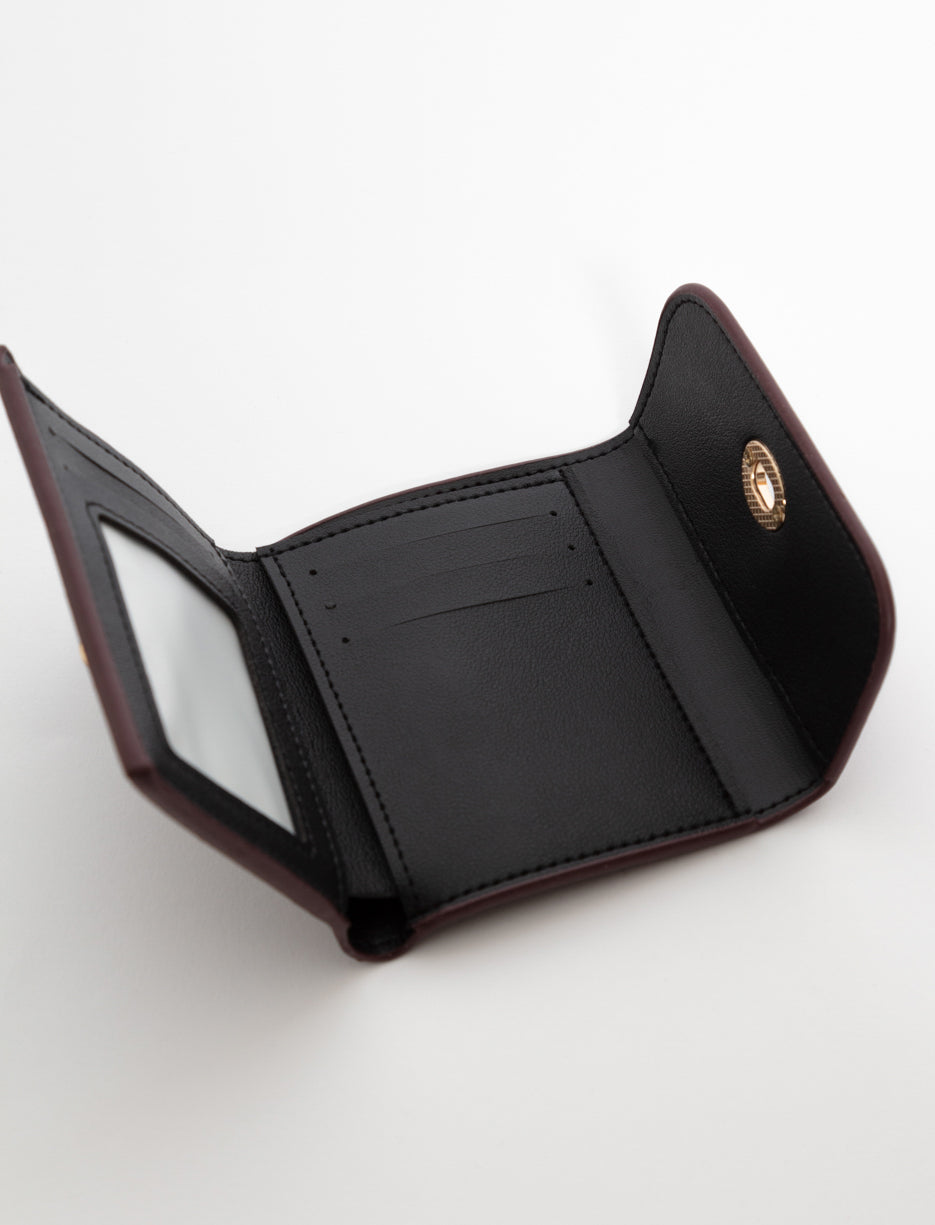 Compact et raffiné, ce portefeuille avec attache en métal garde vos essentiels bien organisés. Son design élégant en fait un accessoire pratique pour toutes les occasions.