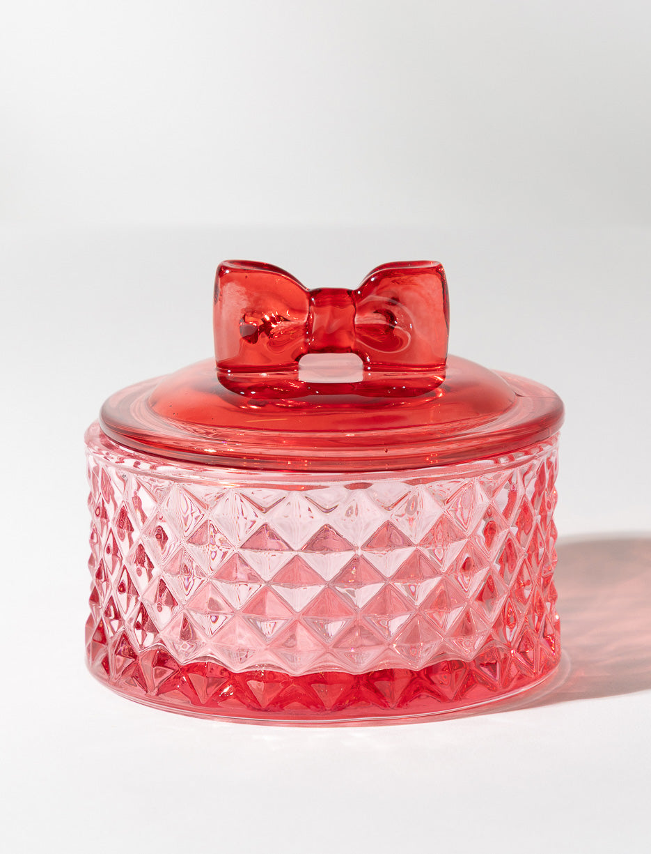 Élégante et raffinée, cette boîte à bijoux en verre embossé est parfaite pour ranger vos trésors. Son couvercle orné d’une boucle ajoute une touche féminine et chic à votre décor. Dimensions : 10,5 x 10,5 x 9,5 cm.