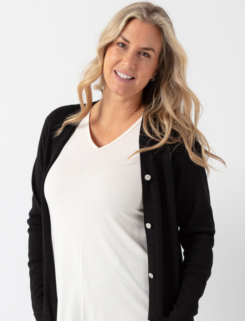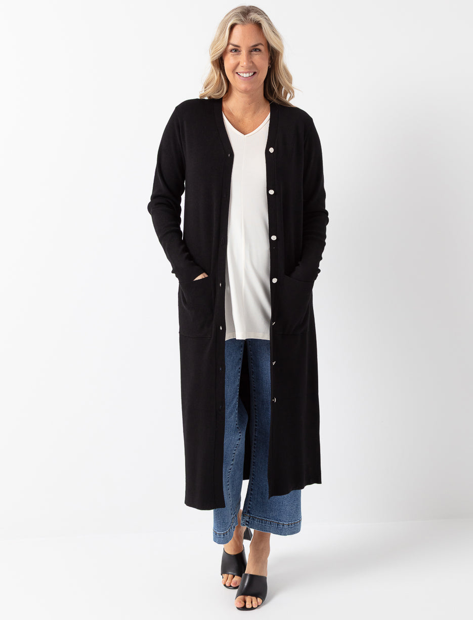 Cardigan long boutonné