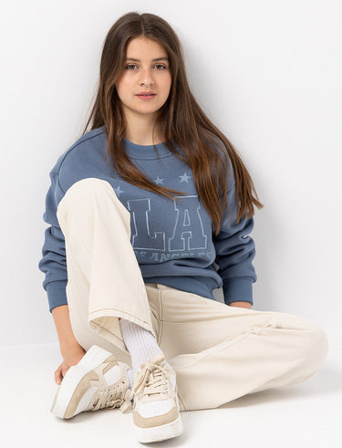 Chandail à col rond avec broderie « LA »