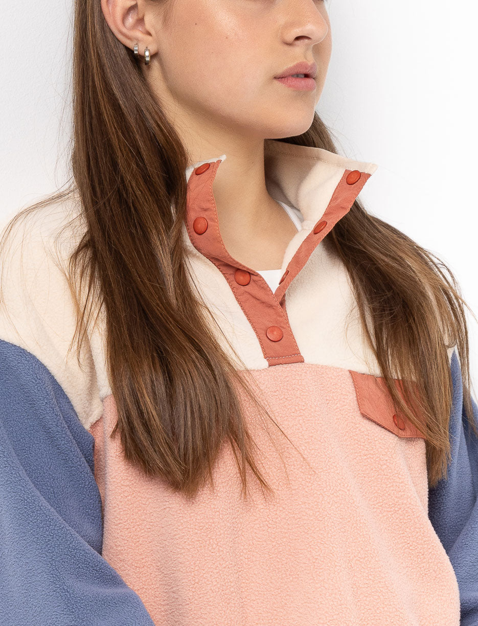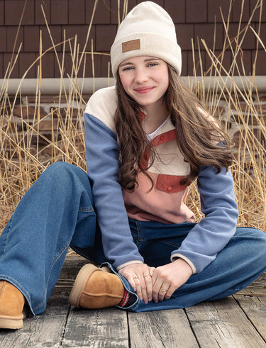 Confort et style s’unissent dans ce chandail en polar à blocs de couleurs. Parfait pour garder votre grande au chaud tout en ajoutant une touche de style à son quotidien.