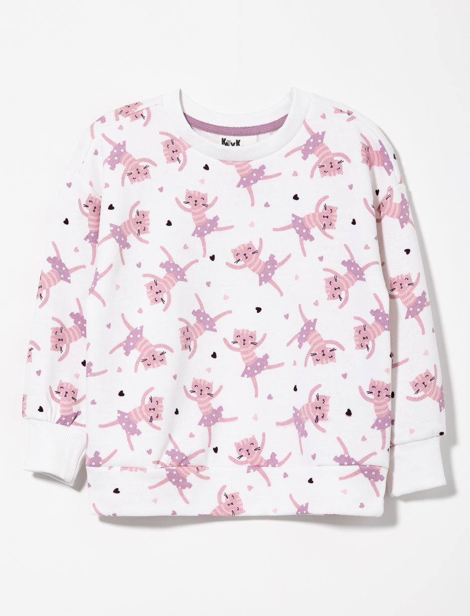 Chandail ouaté imprimé chats - petite fille