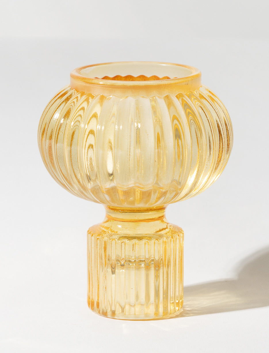 Illuminez votre décor avec ce magnifique porte-chandelle en verre flûté. Sa forme arrondie et ses rainures élégantes diffusent la lumière avec délicatesse pour une ambiance raffinée. Dimensions : 8 x 8 x 9 cm.
