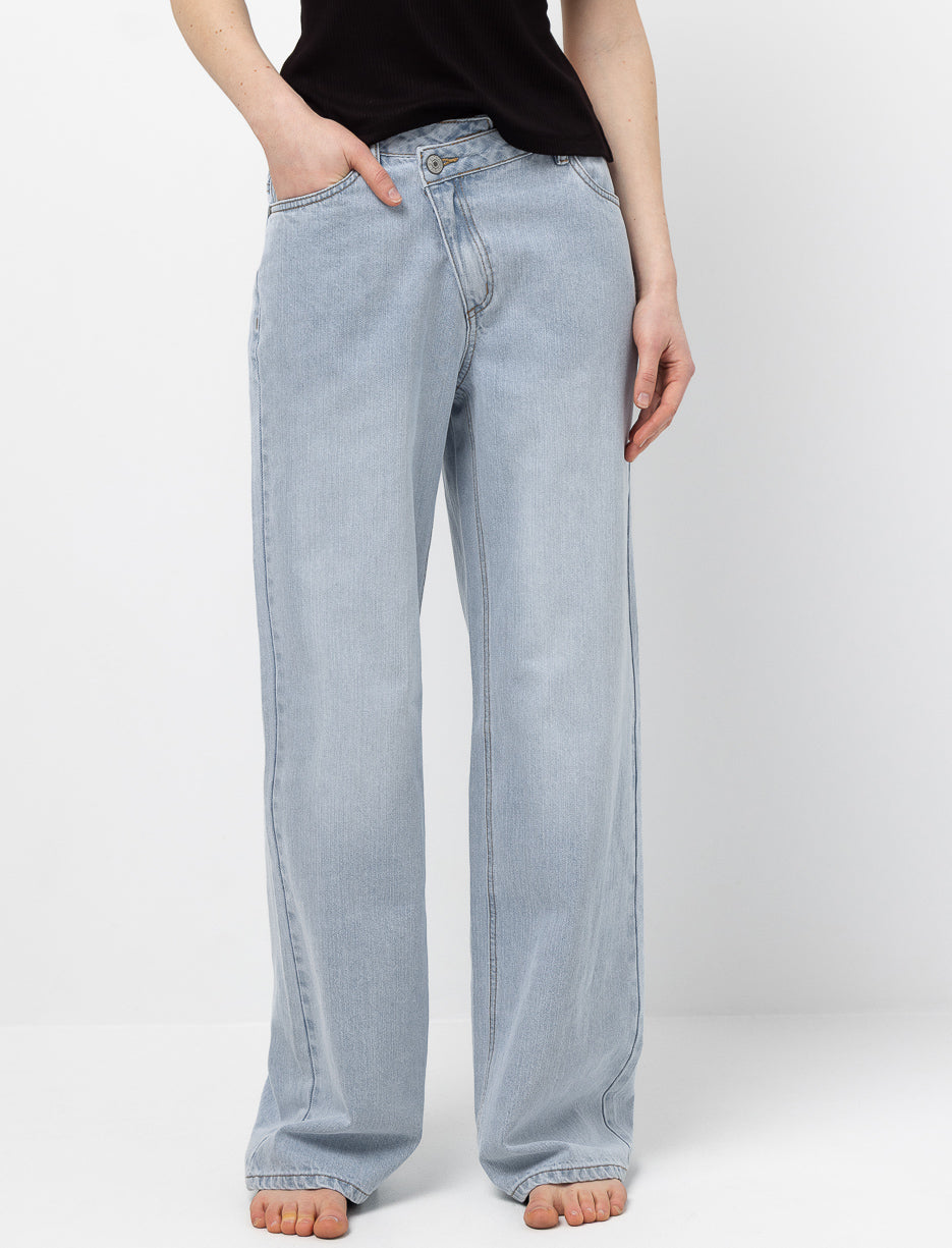 Adoptez le chic décontracté avec ce jean asymétrique, parfait pour un look tendance et confortable.
