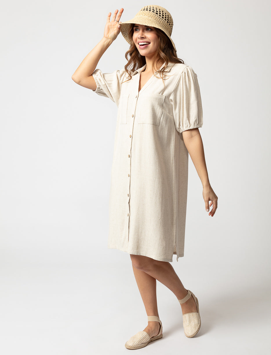 Rayonnez de charme et de grâce dans cette robe chemise en lin, une tenue intemporelle qui dégage une beauté sans effort.