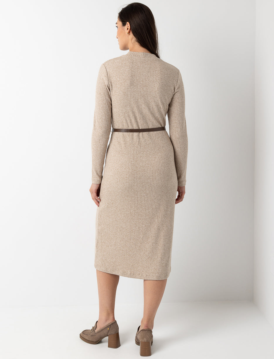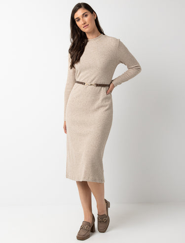Pour les journées où vous voulez conjuguer simplicité et élégance sans effort. Cette robe côtelée à manches longues épouse votre silhouette avec douceur, pendant que la ceinture ajoute juste ce qu’il faut de structure.