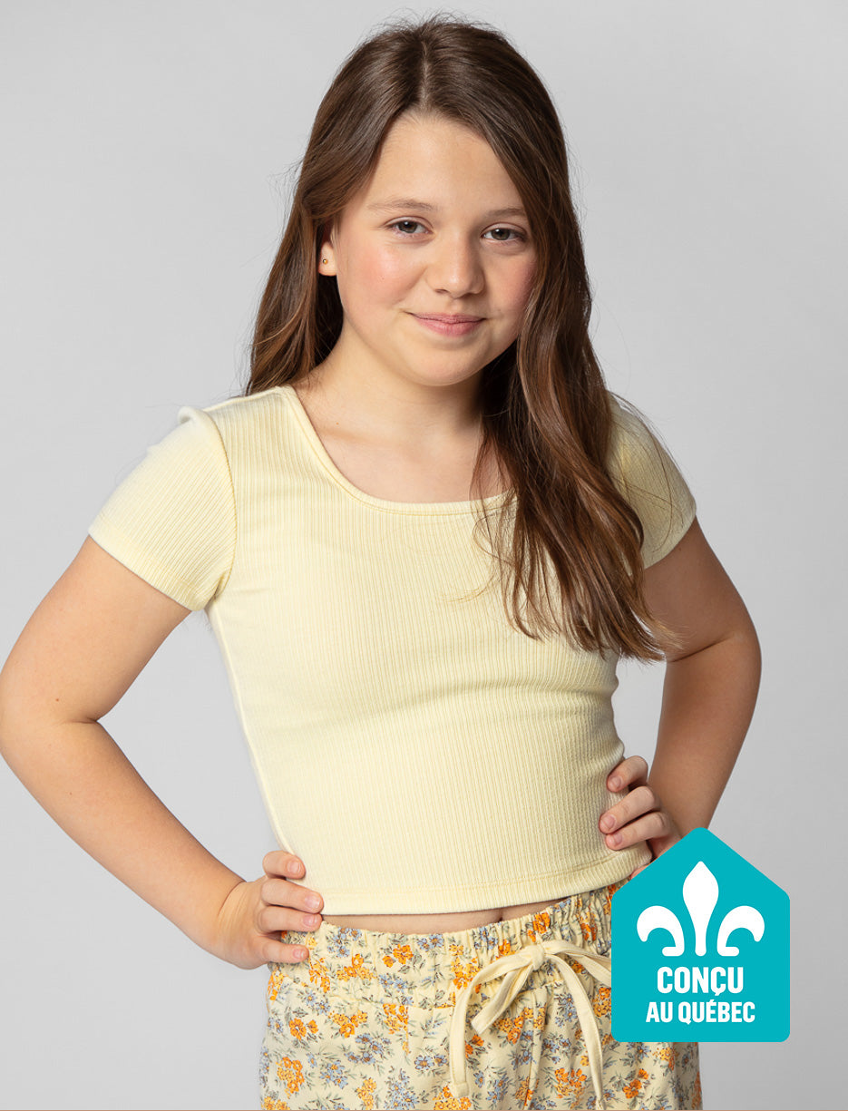 T-shirt côtelé à col carré
