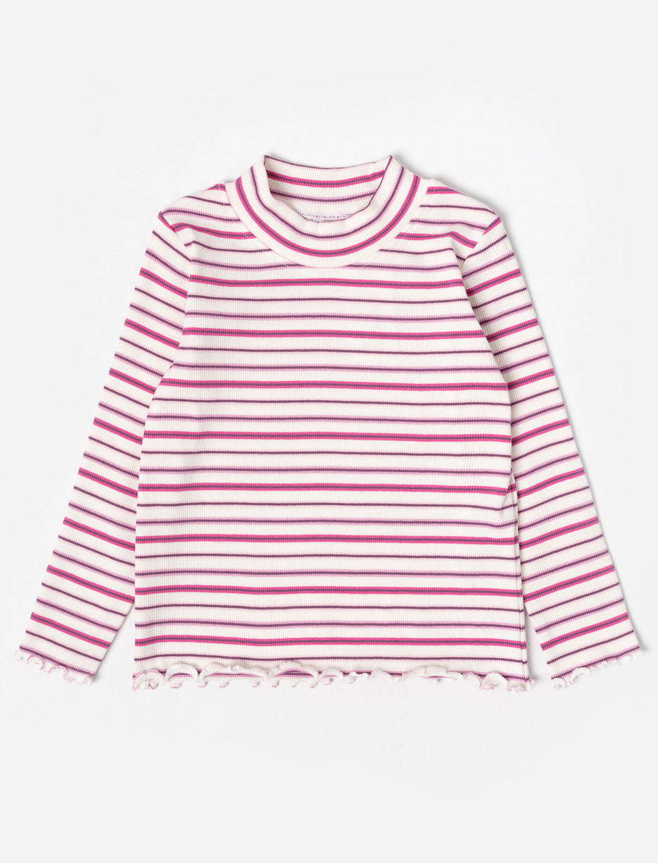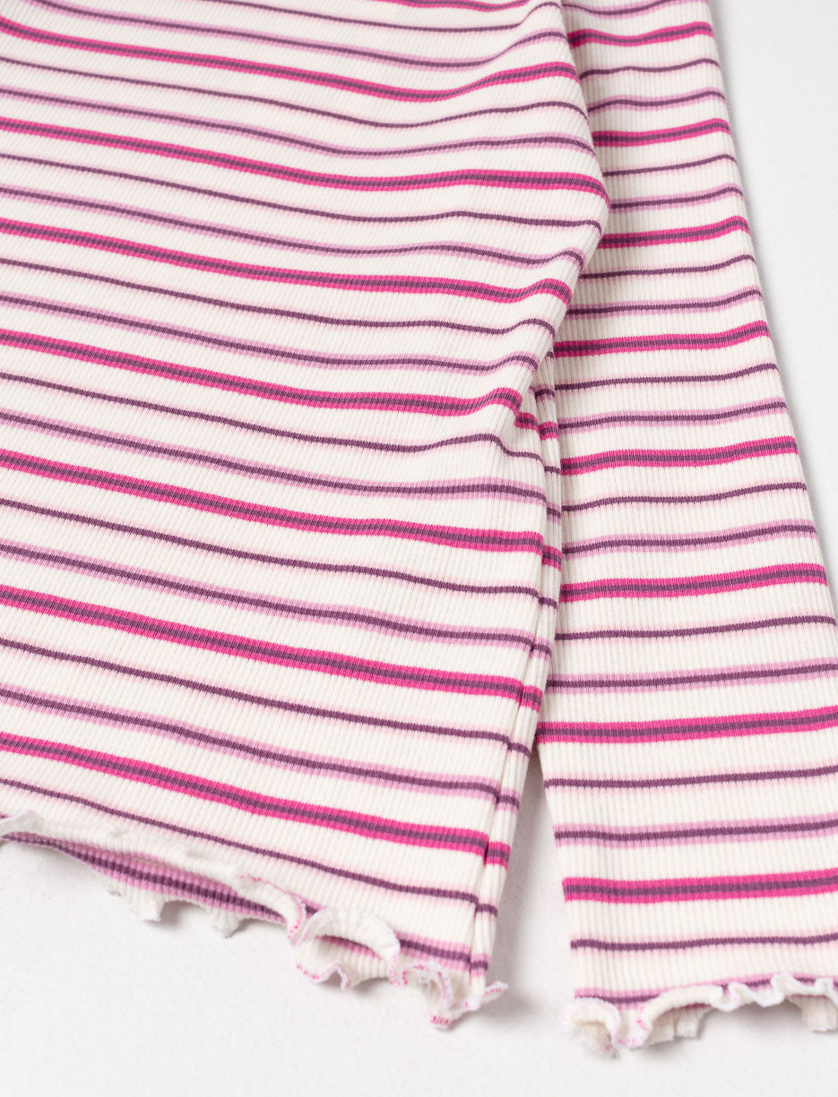 Conçu dans un tissu côtelé doux, ce t-shirt à manches longues rayé apporte confort et style au quotidien. Idéal à porter seul ou sous un chandail pour superposer les looks.