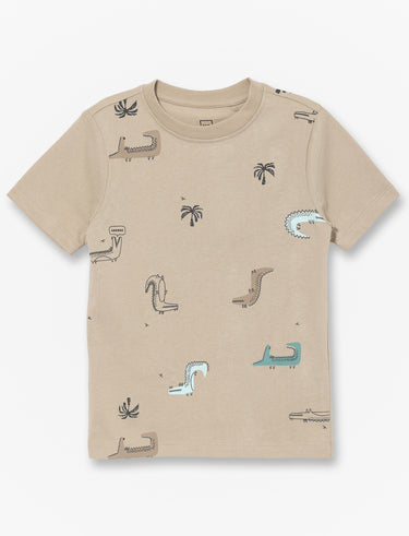 Un t-shirt en coton bio imprimé de dinosaures sur l’ensemble, parfait pour ajouter une touche ludique au quotidien. Léger et agréable, il accompagne chaque moment avec confort et fantaisie.